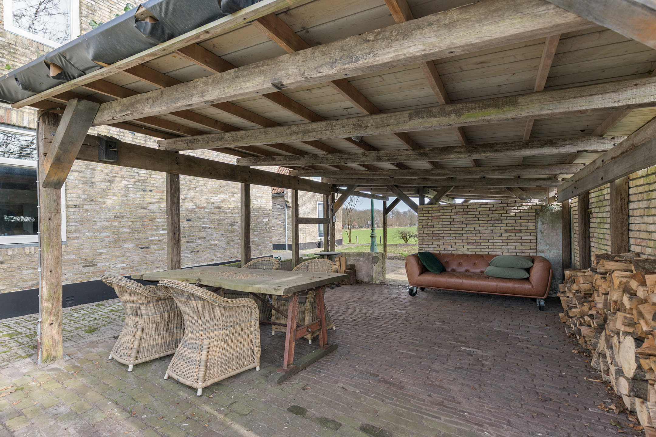 The garden is thoughtfully designed around the terp and blends harmoniously with the surrounding landscape. A long private driveway, guest parking area, carport with covered west-facing terrace, easy-to-maintain lawn, various planted borders, an orchard with traditional fruit varieties and a beautiful pond with sheltered decking terrace together create a true countryside oasis.