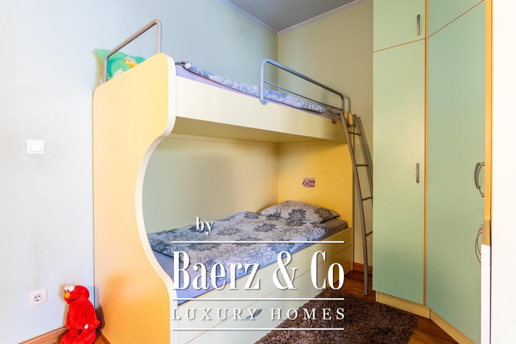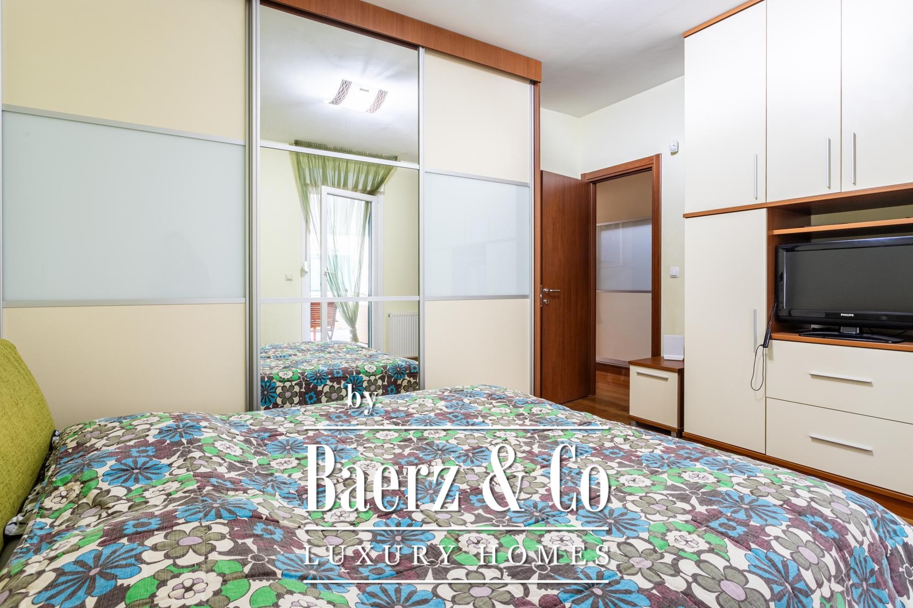 it back into a three-bedroom layout.The apartment is equipped with electric central heating, ensuring a comfortable stay throughout the year.A special feature of this property is the beautifully arranged outdoor courtyard with a fireplace, providing the perfect space for socializing and relaxation.