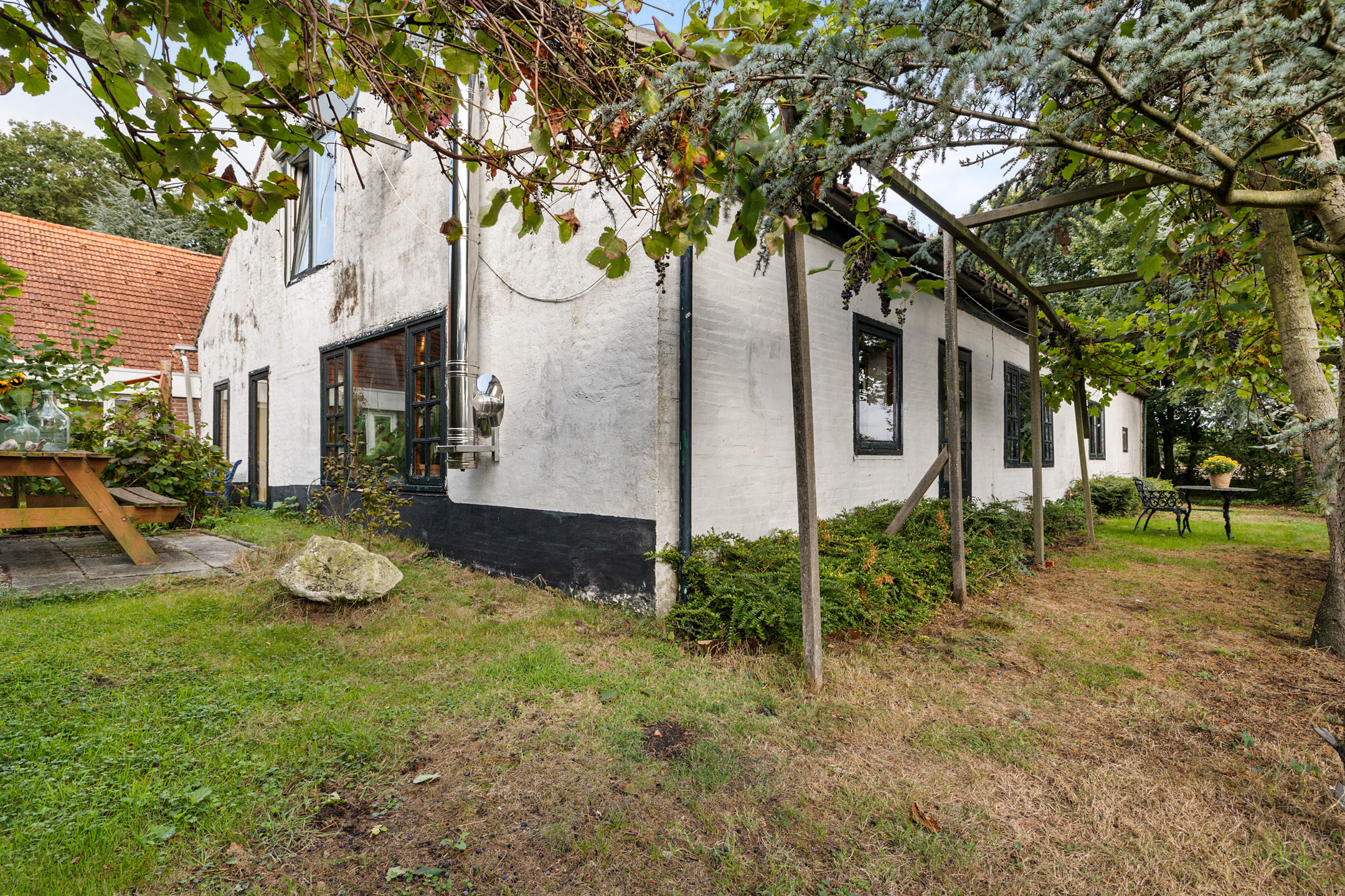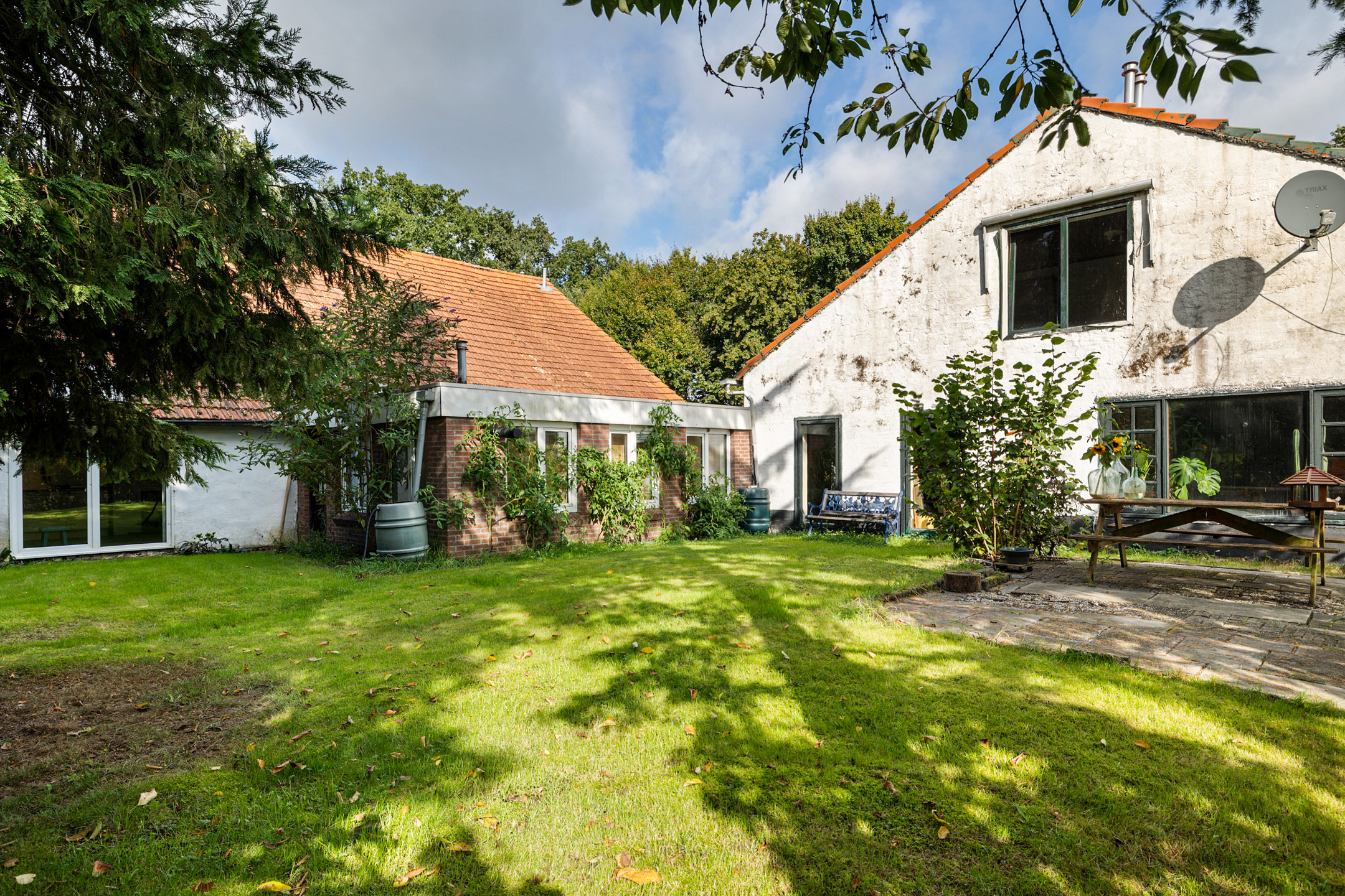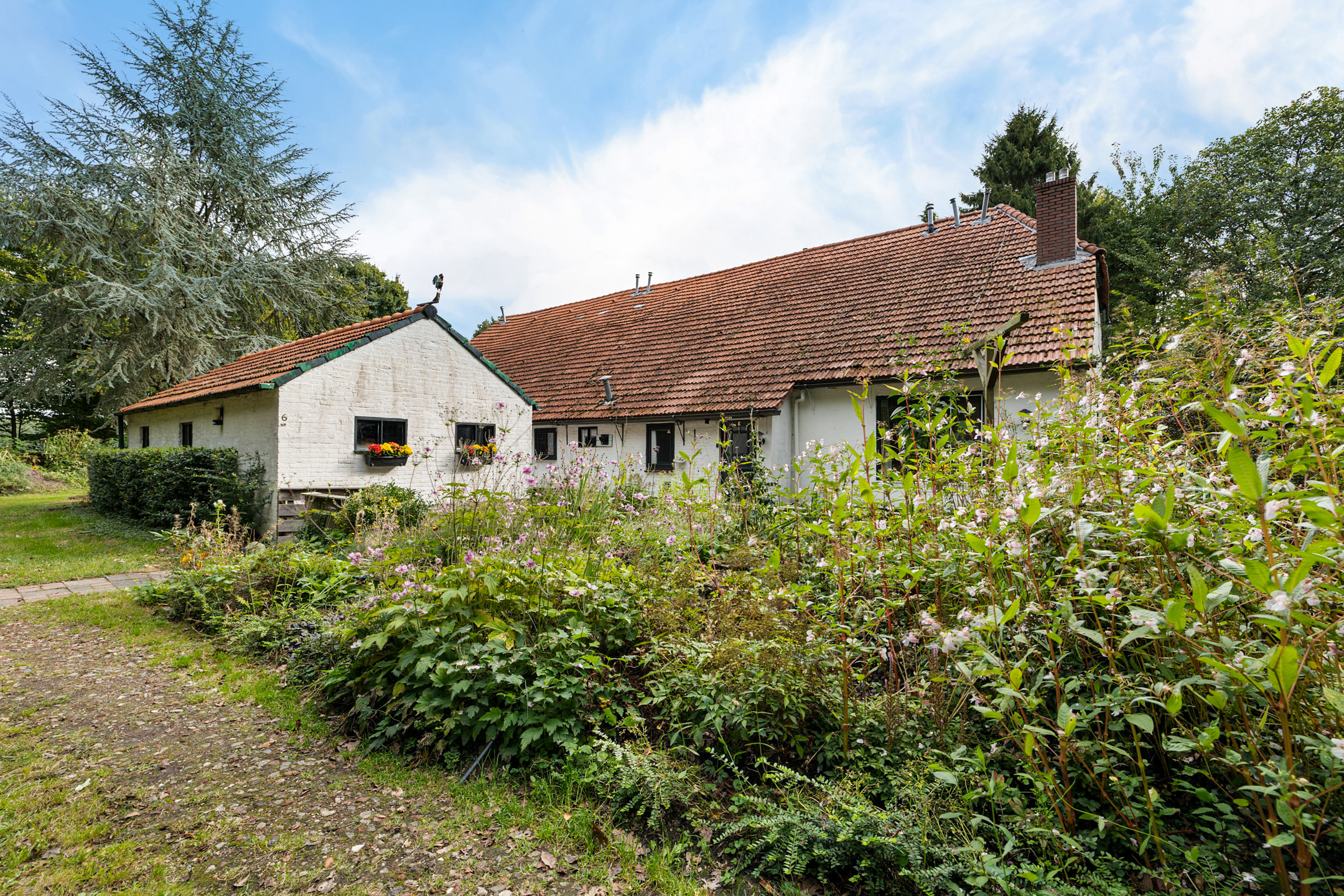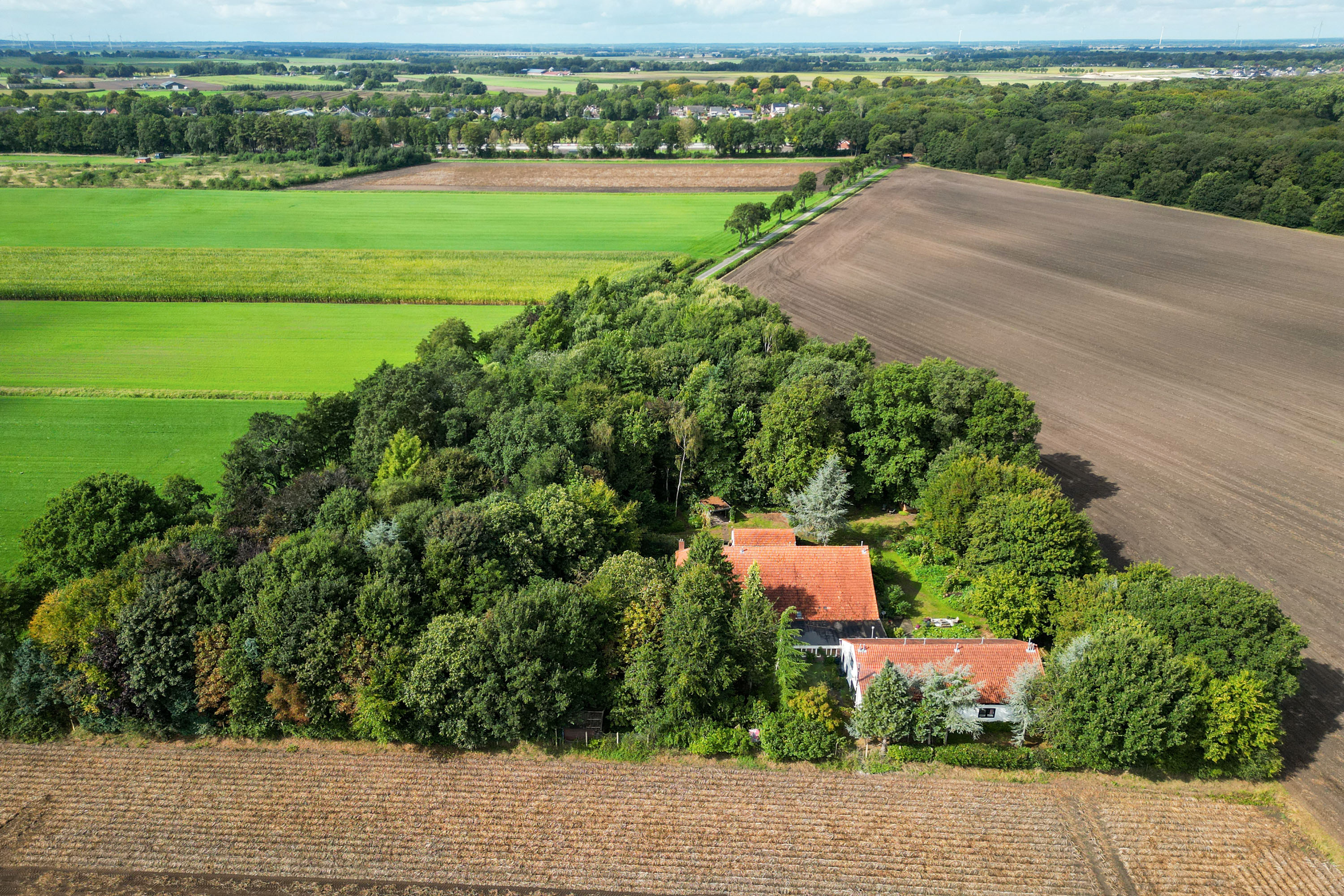 In the wooded hamlet of Barnflair, within the municipality of Westerwolde, this distinctive double farmhouse dating from 1872 is quietly situated along a country lane that transitions into a cycle path. Surrounded by trees, meadows, arable land and nature, and set on a generous plot of 12,320 m², this is a place where serenity, freedom and complete privacy are a daily reality.