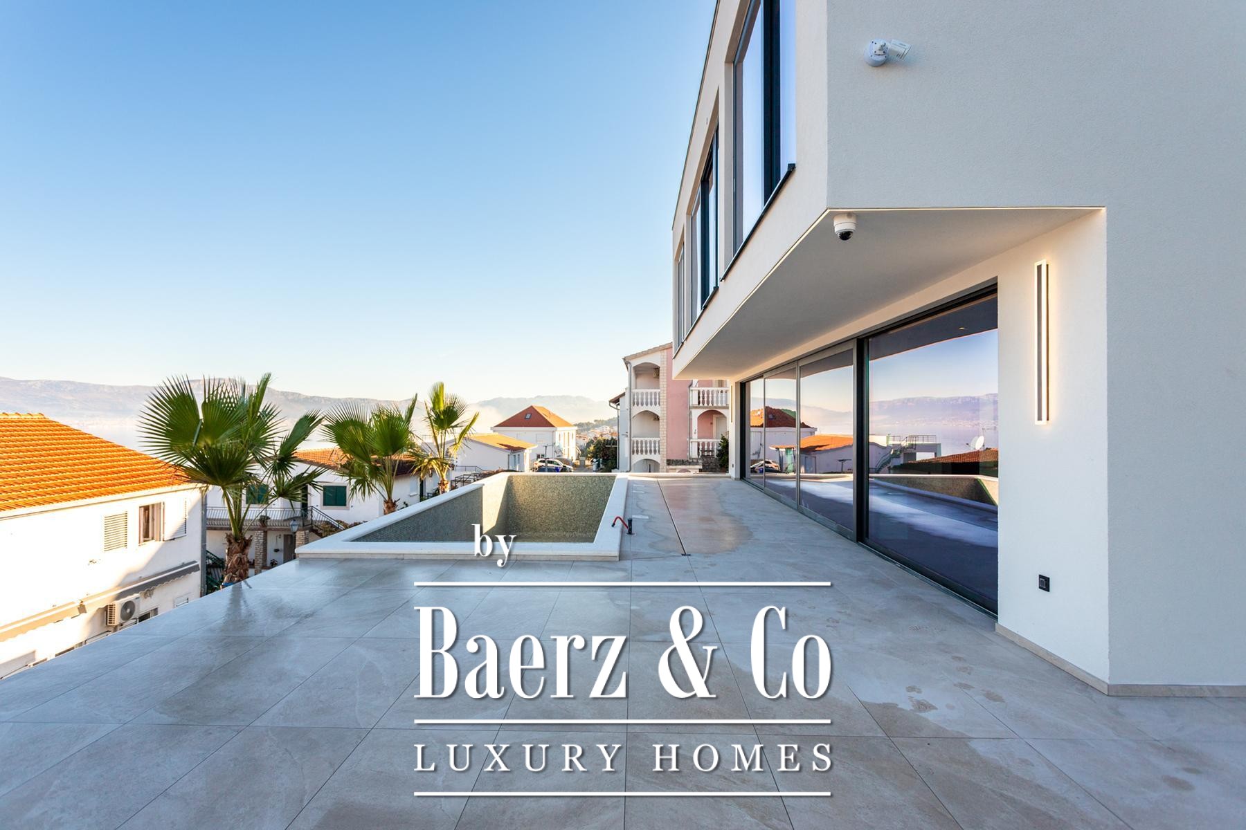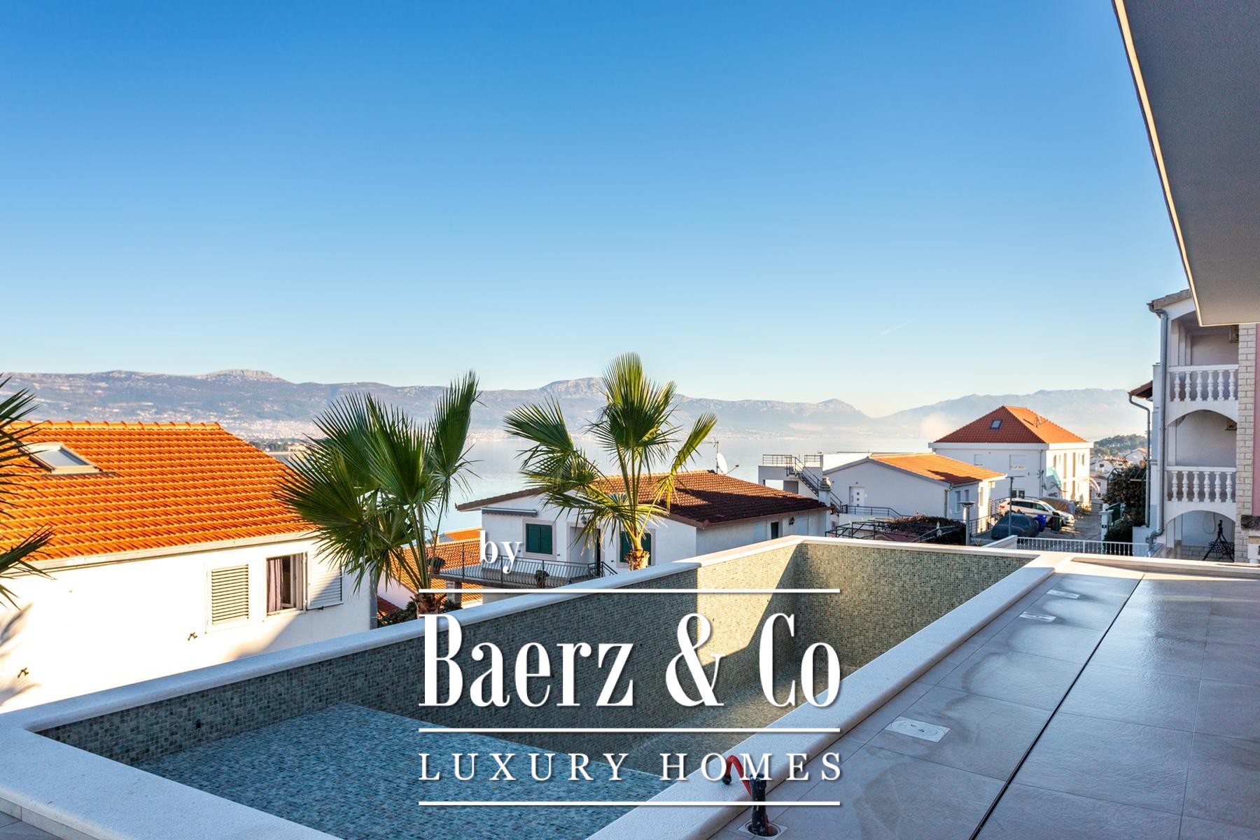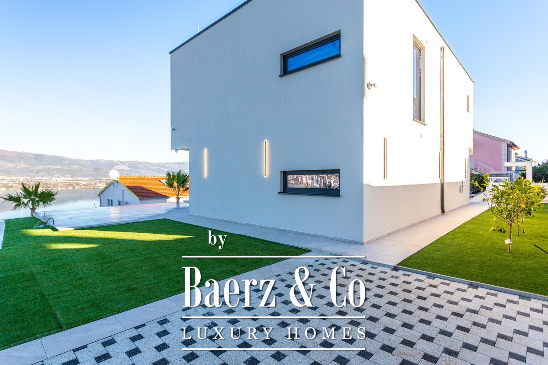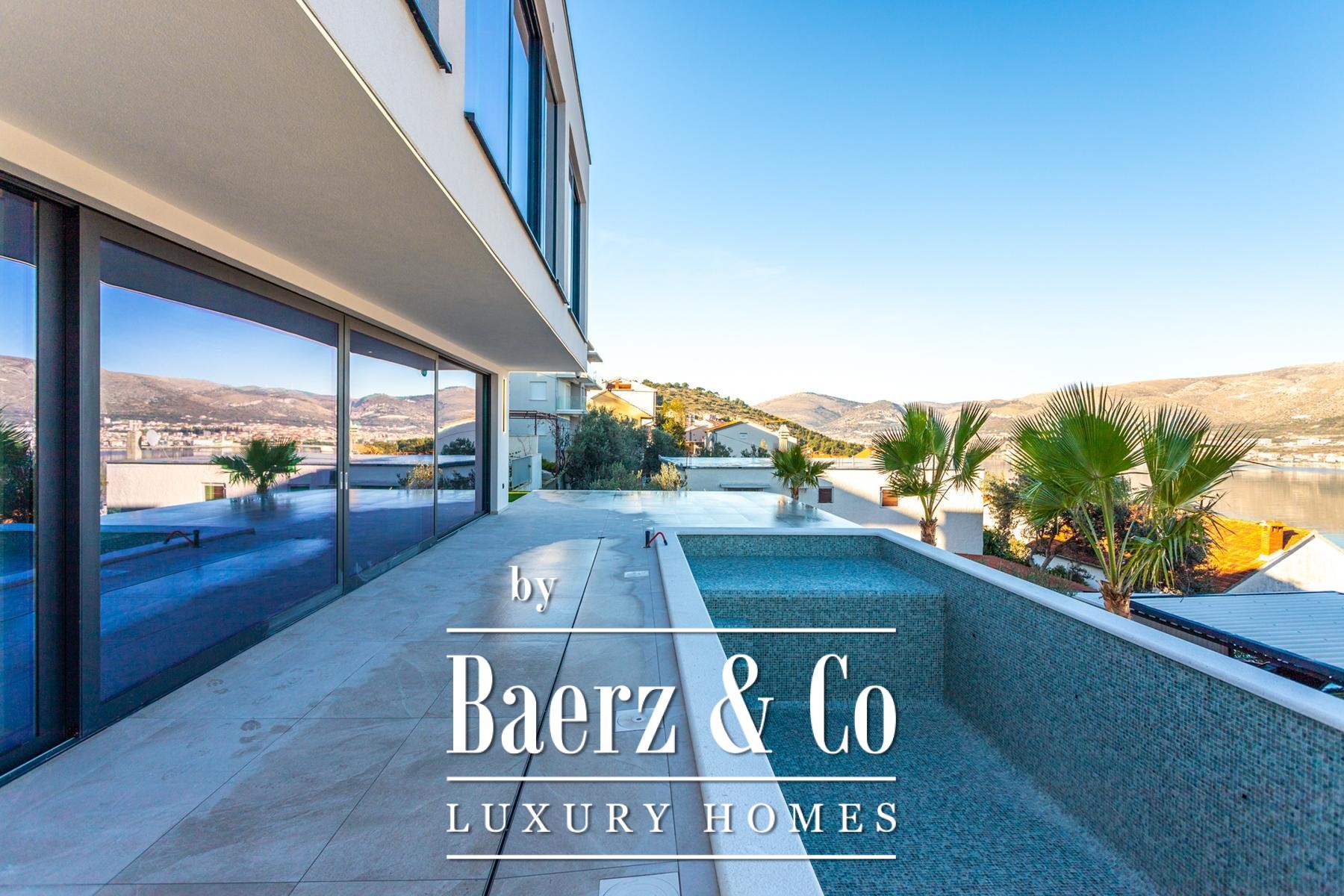 Villa Trogir Okolica offers an unobstructed sea view from its elevated position in Mastrinka, Čiovo, Croatia. This newly built villa comprises 278 m² of living space arranged over three levels, with every detail reflecting purposeful design.