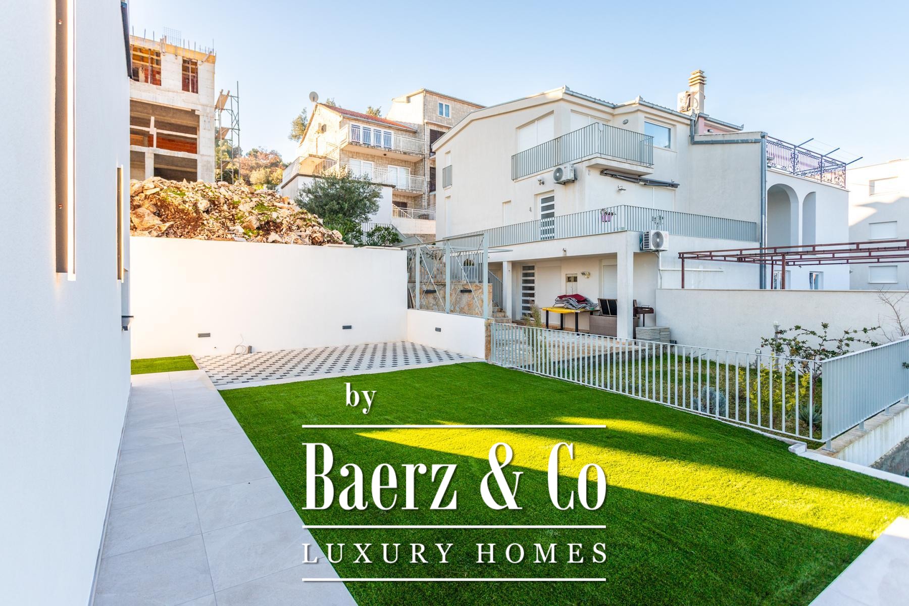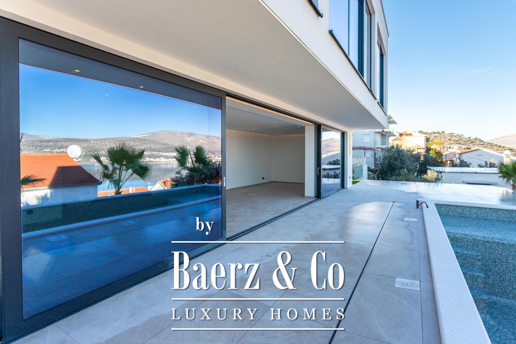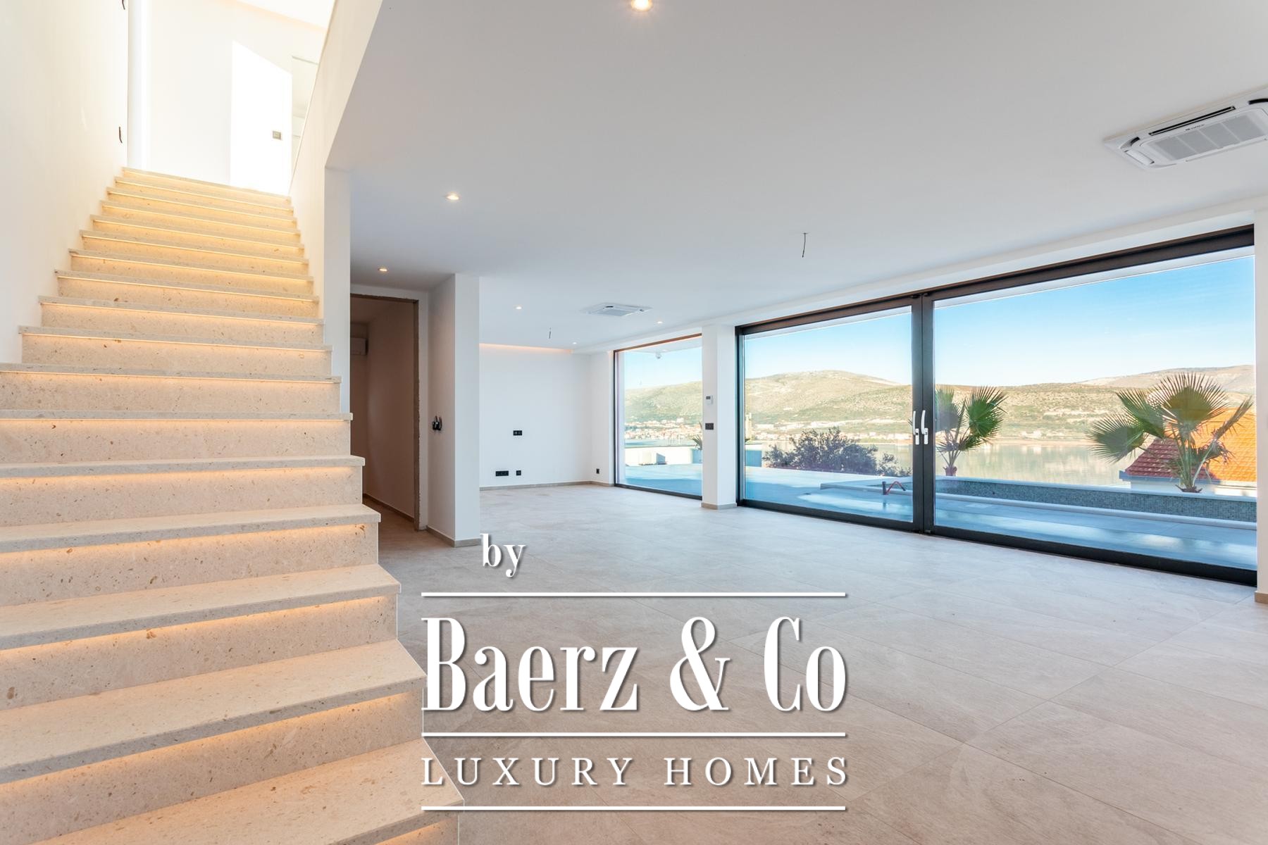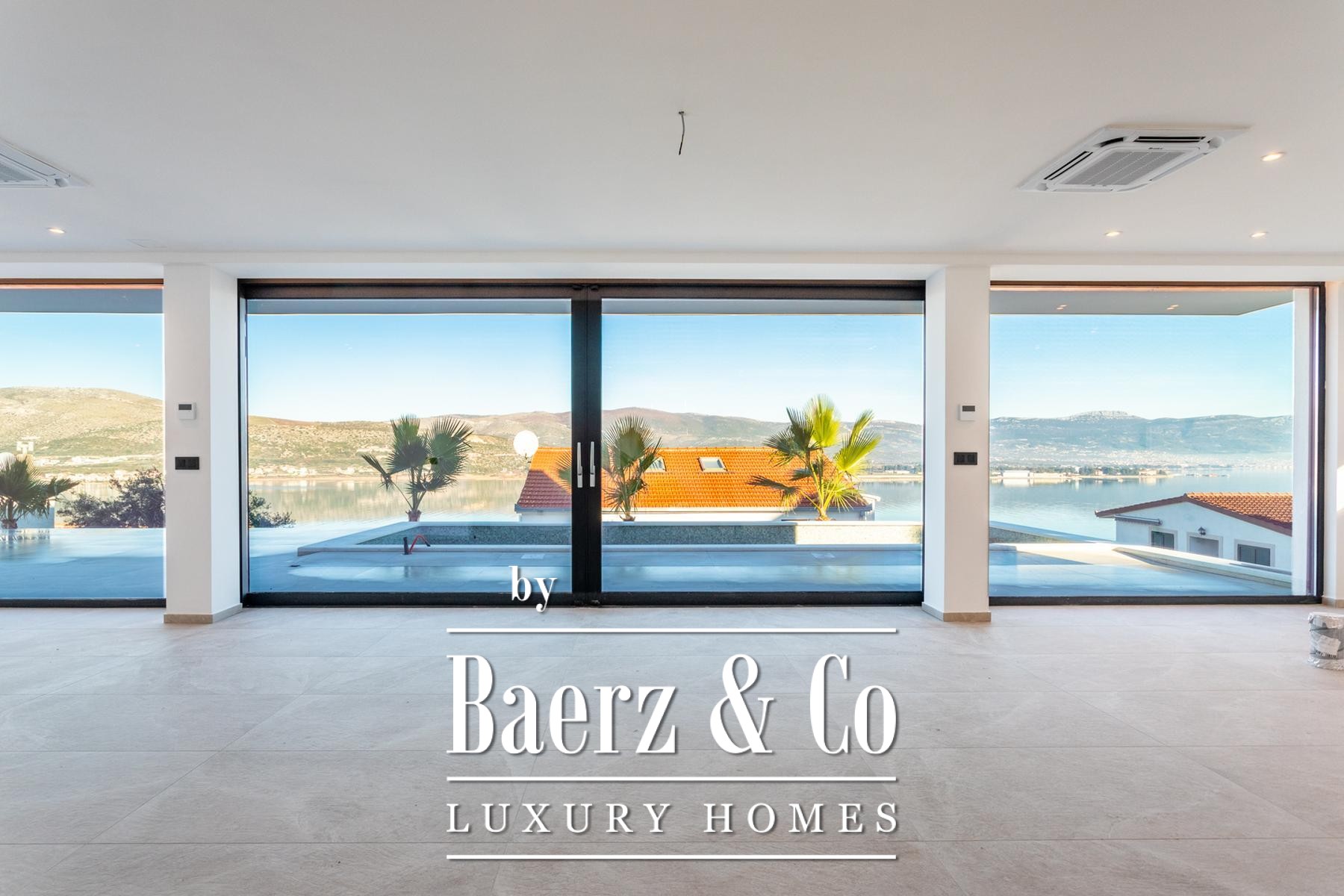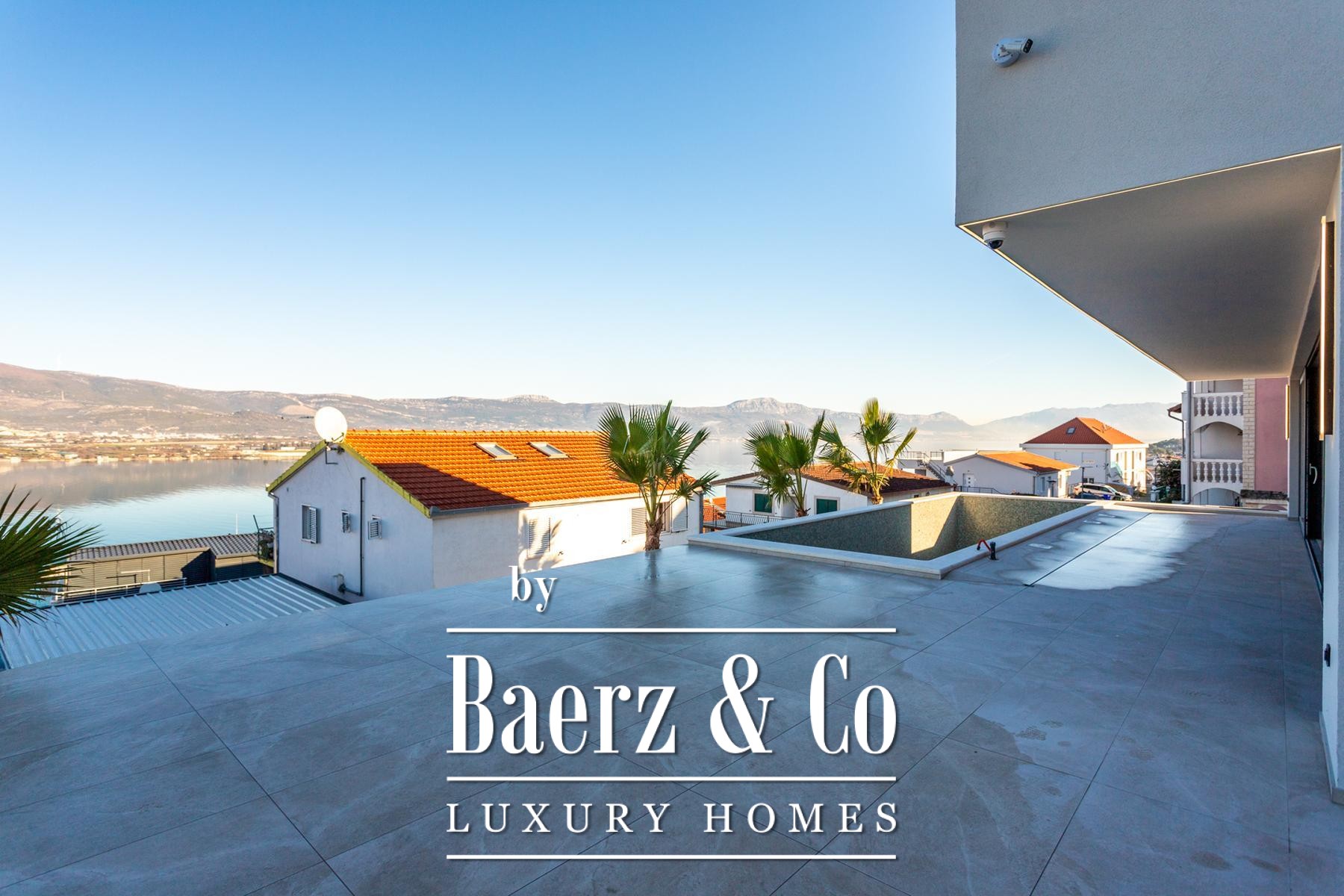 Villa Trogir Okolica offers an unobstructed sea view from its elevated position in Mastrinka, Čiovo, Croatia. This newly built villa comprises 278 m² of living space arranged over three levels, with every detail reflecting purposeful design.
