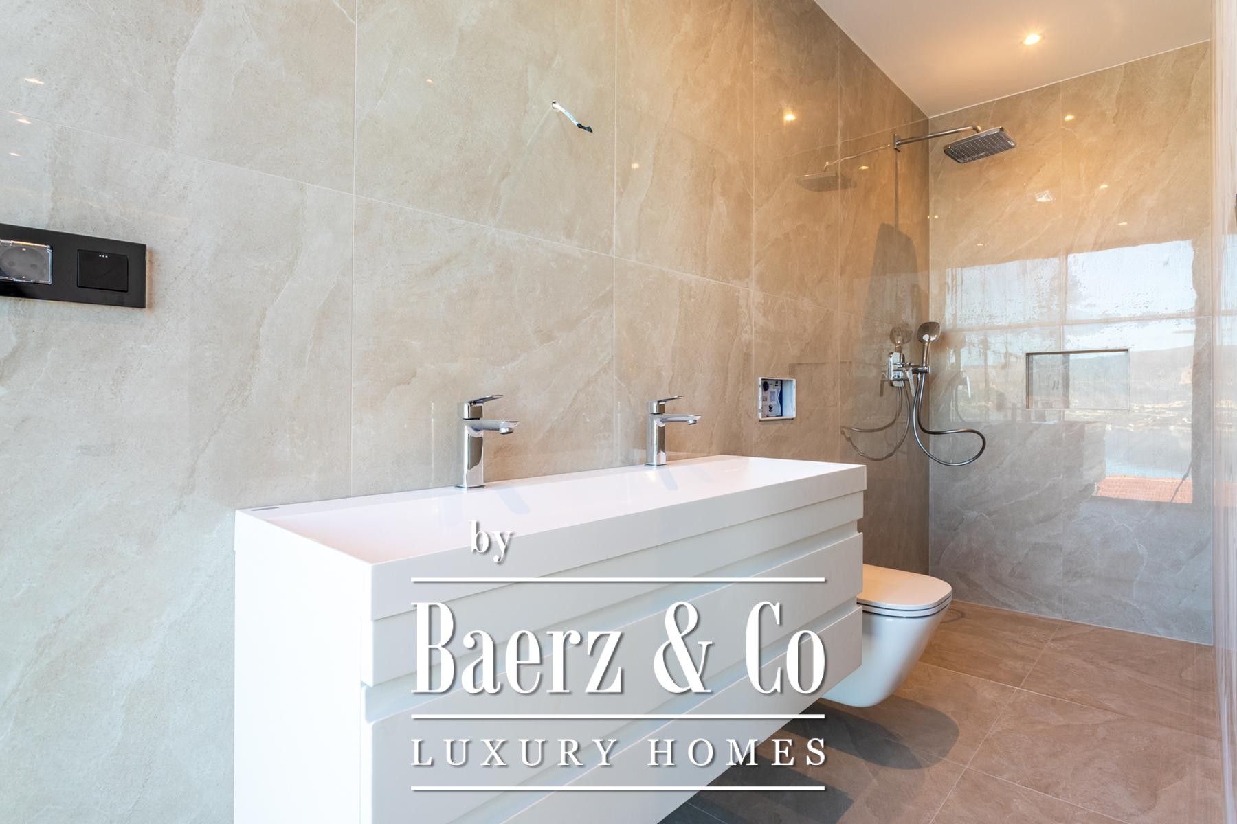 Set on a 500 m² plot, the gardens and exterior are fully landscaped and carefully maintained. The villa is sold unfurnished, enabling the future owner to realise their own vision within this contemporary coastal retreat. This villa represents both a statement of architecture and a private horizon above the sea.