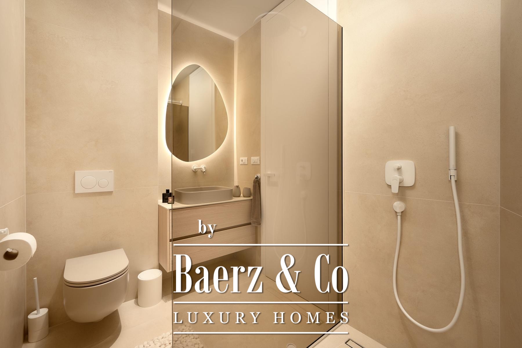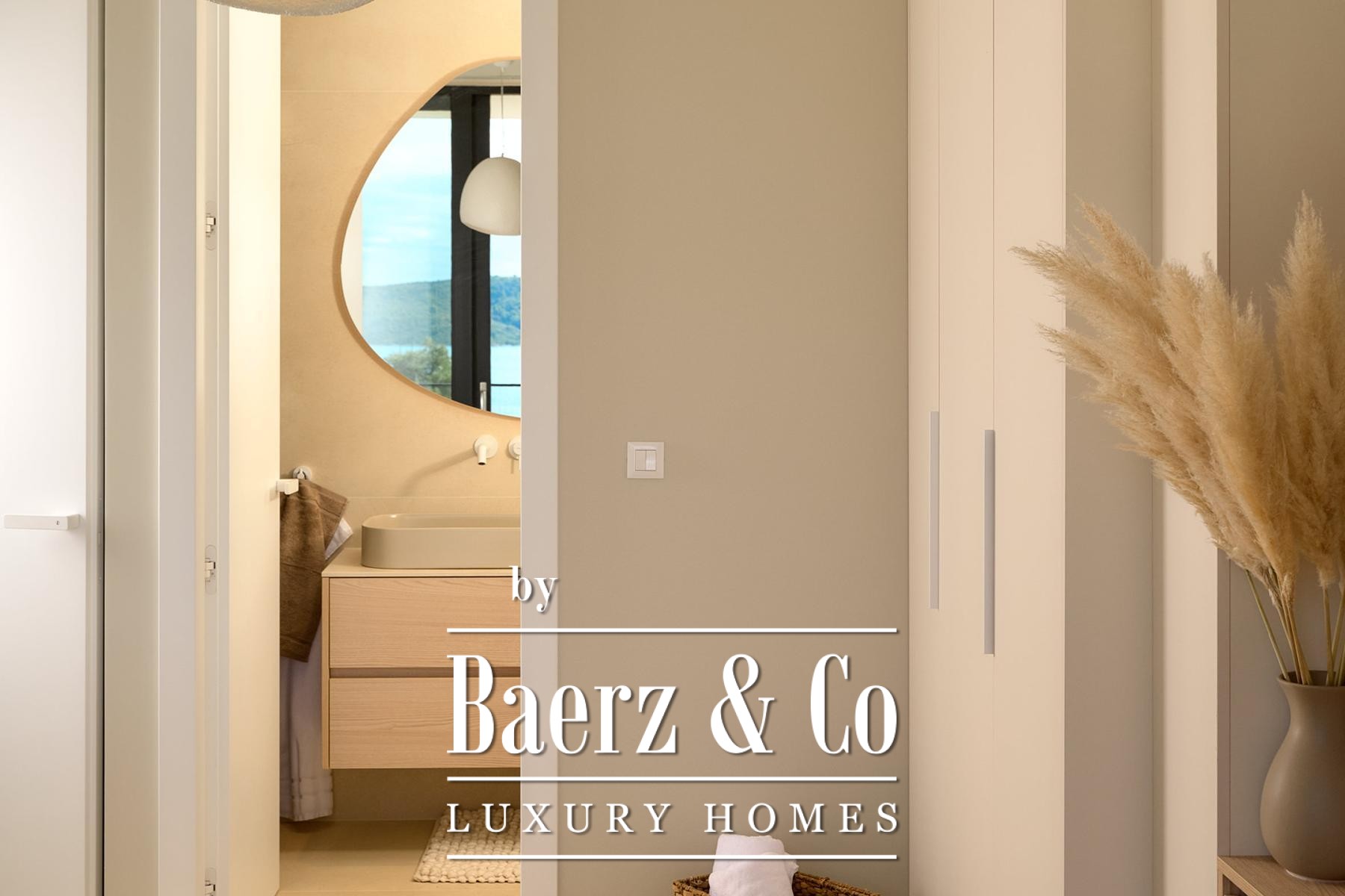 On the lower level, a dedication to wellness prevails. The professionally appointed fitness zone, sauna, entertainment area, and utility suite open directly onto sunlit terraces, offering a seamless transition to the outdoors. Here, an infinity pool of 31 m² with heated massages and counter-current waves, a jacuzzi, and a generous sundeck invite repose against the backdrop of the sea.