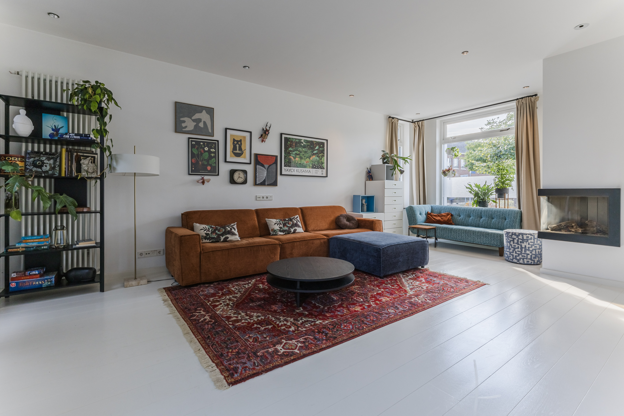 The spacious living area benefits from abundant natural light, underfloor heating, and a gas fireplace. The living room connects openly to the kitchen-diner but can be separated by elegant pivot doors. A practical cellar provides additional storage, and the unique raised room (opkamer) offers access to the first floor.