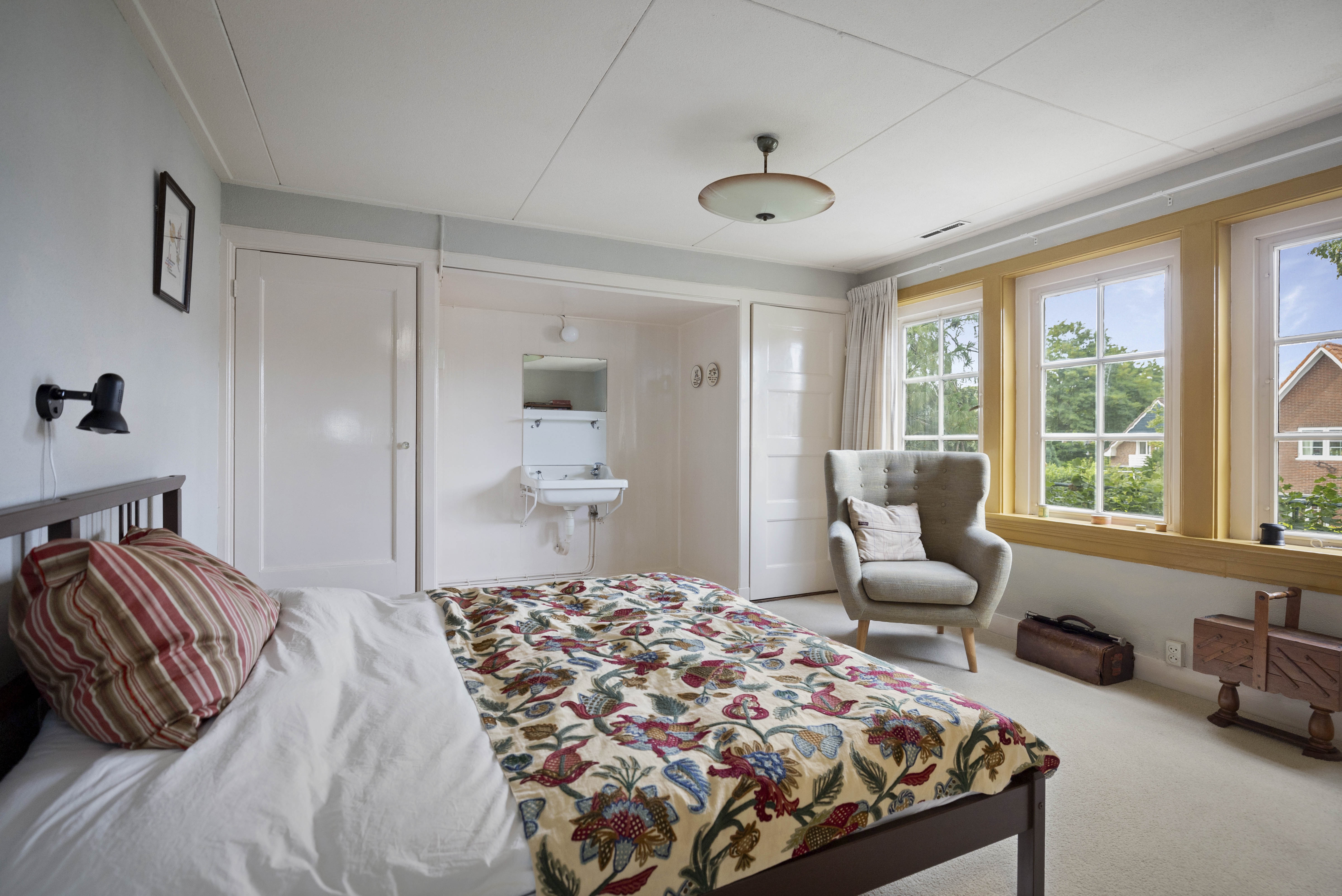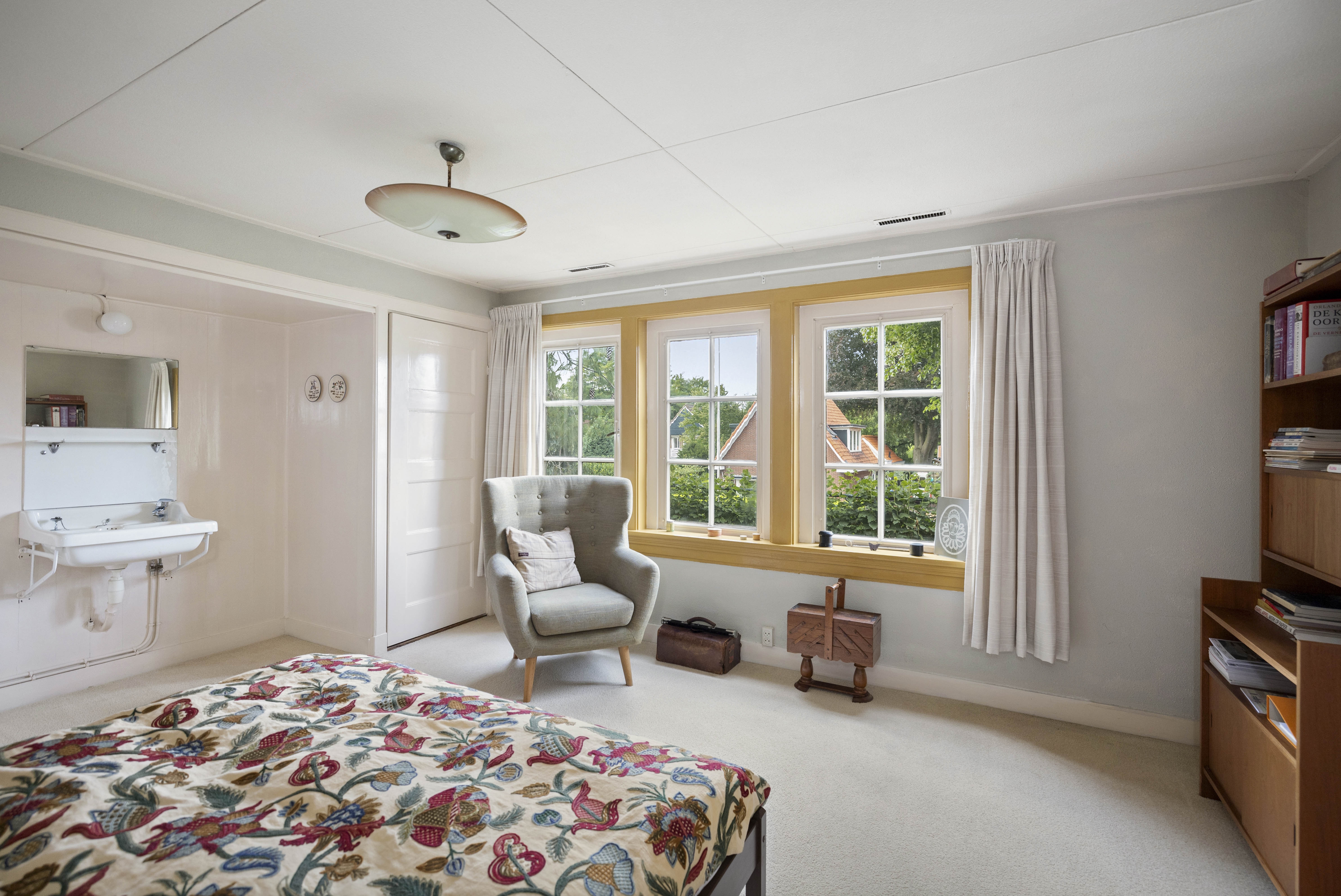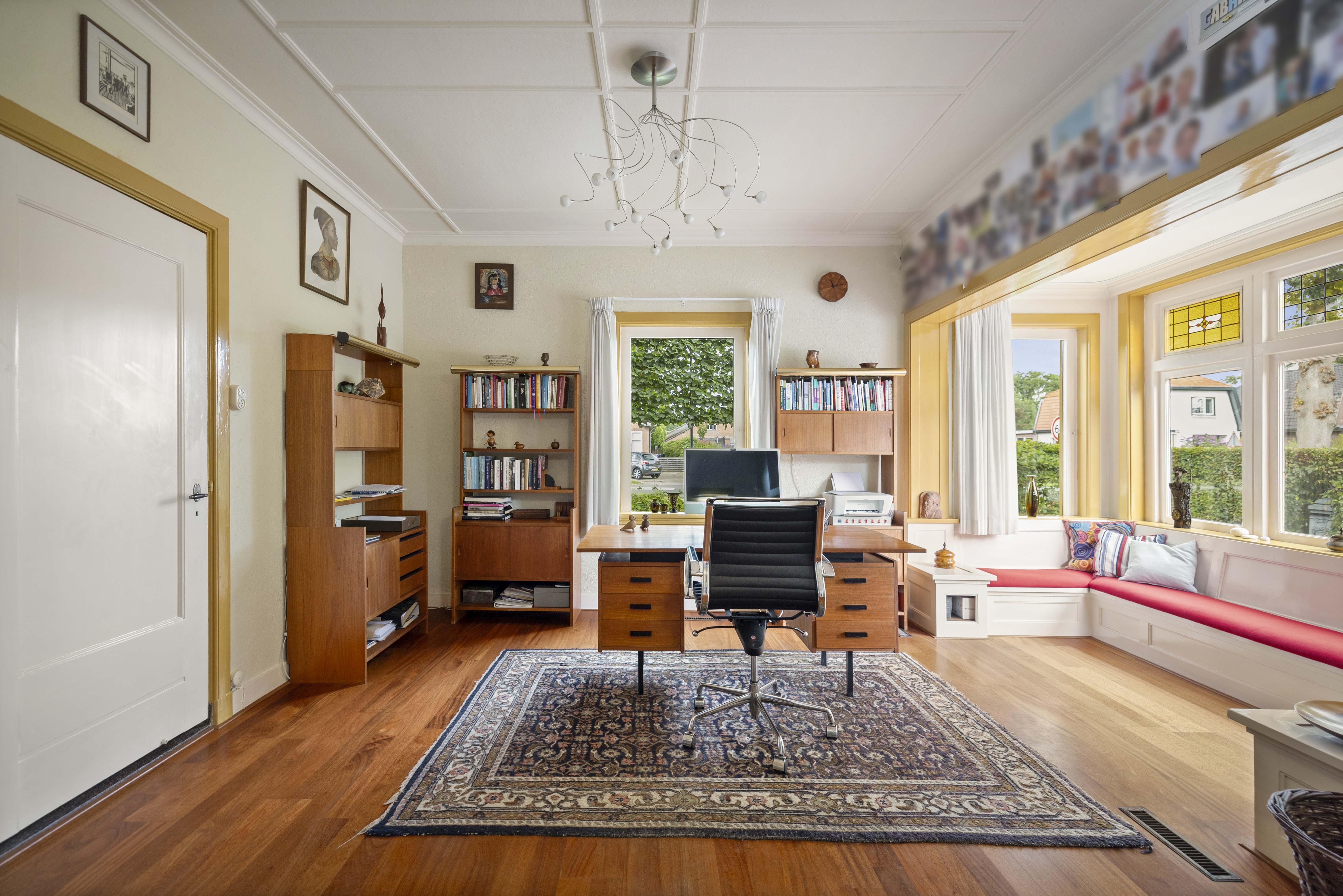 Like many of his colleagues, Bakker designed “total works of art”; exterior and interior flowed effortlessly into one another and every detail was carefully considered. From the stepped bridge in the hall to how the sunlight would scatter the colours of the stained-glass skylights across the floor, the ceilings, the staircase, the bay window, the glazing bars and the unique pentagonal window in the garden room – everything is part of the whole. A house with a character all of its own.