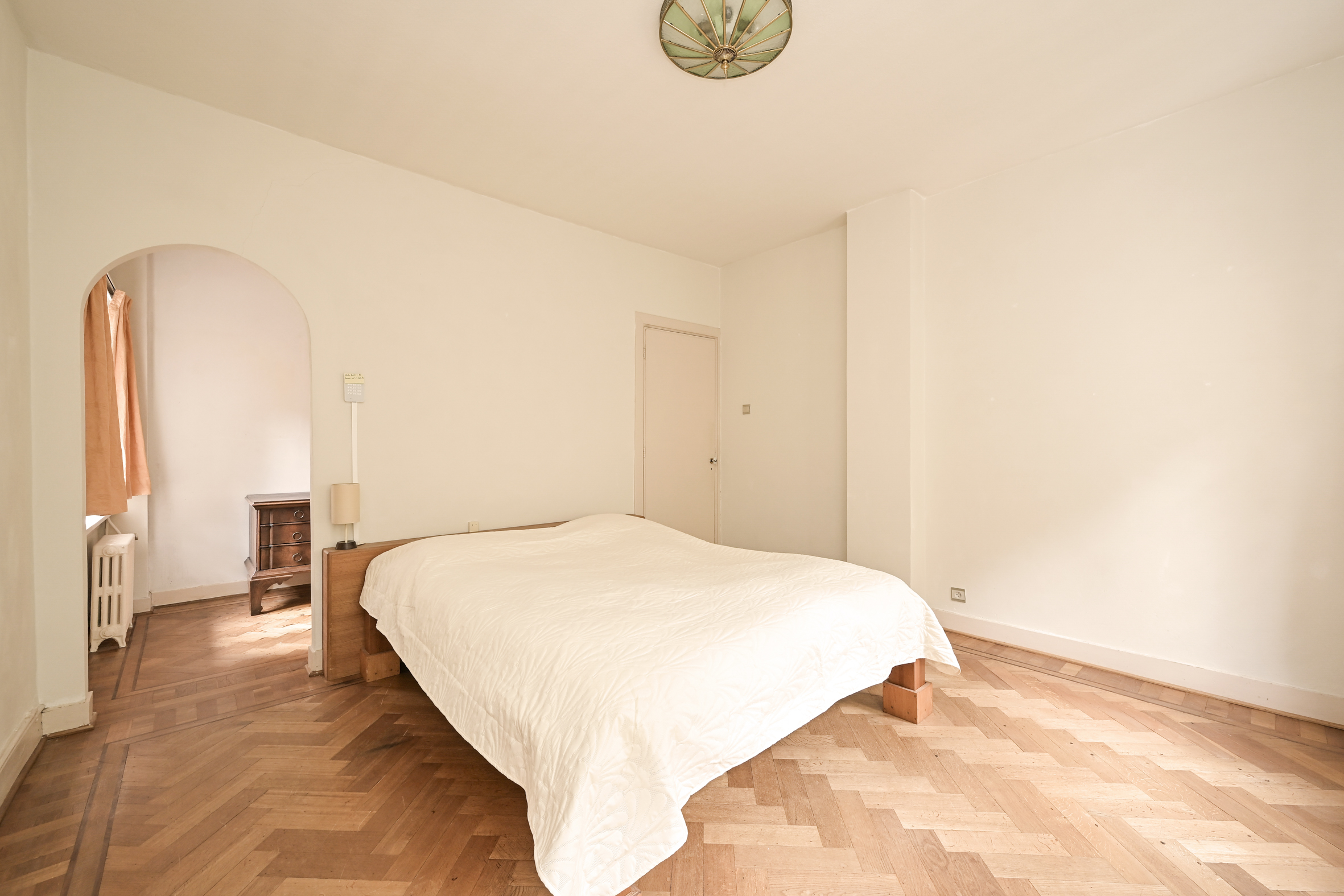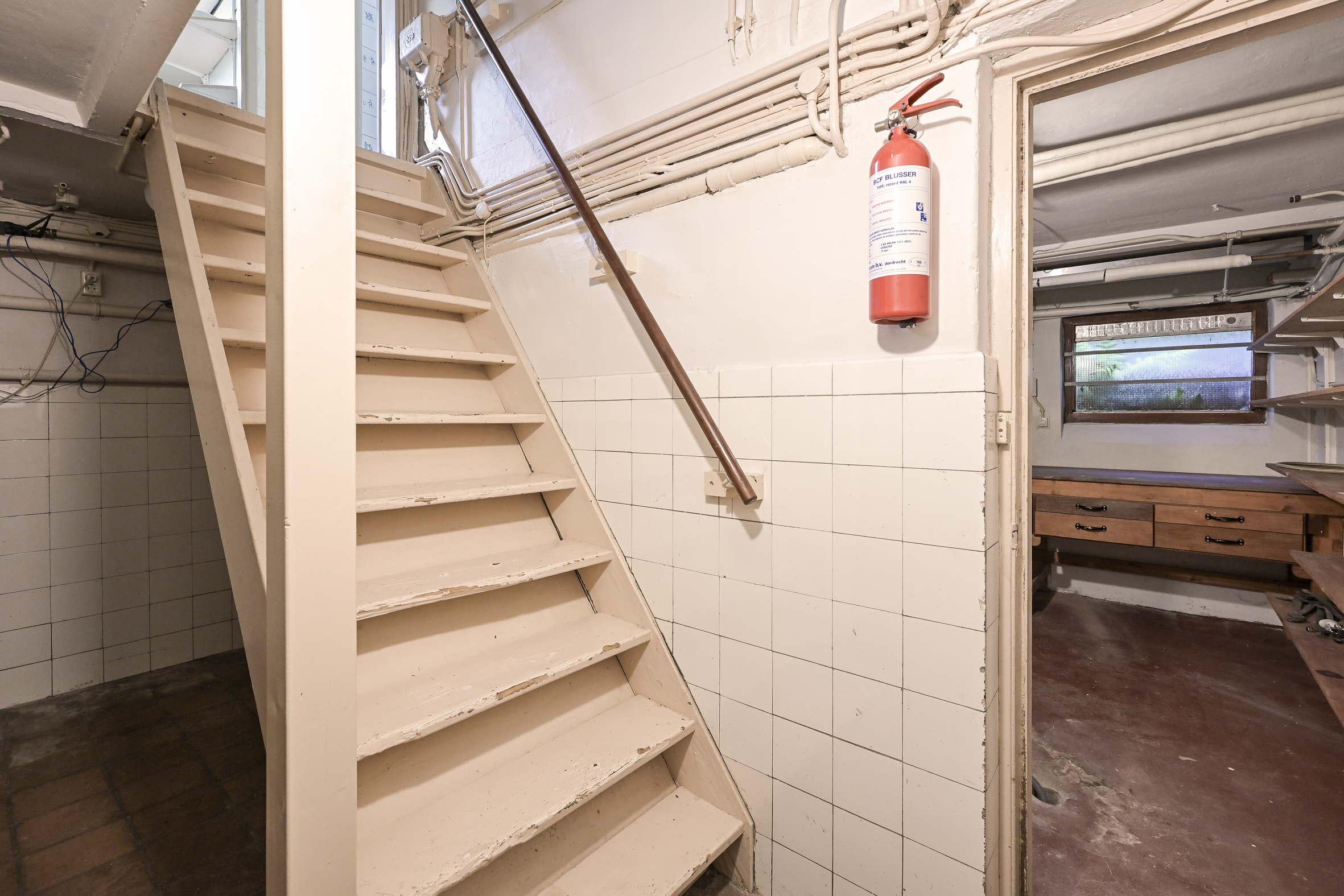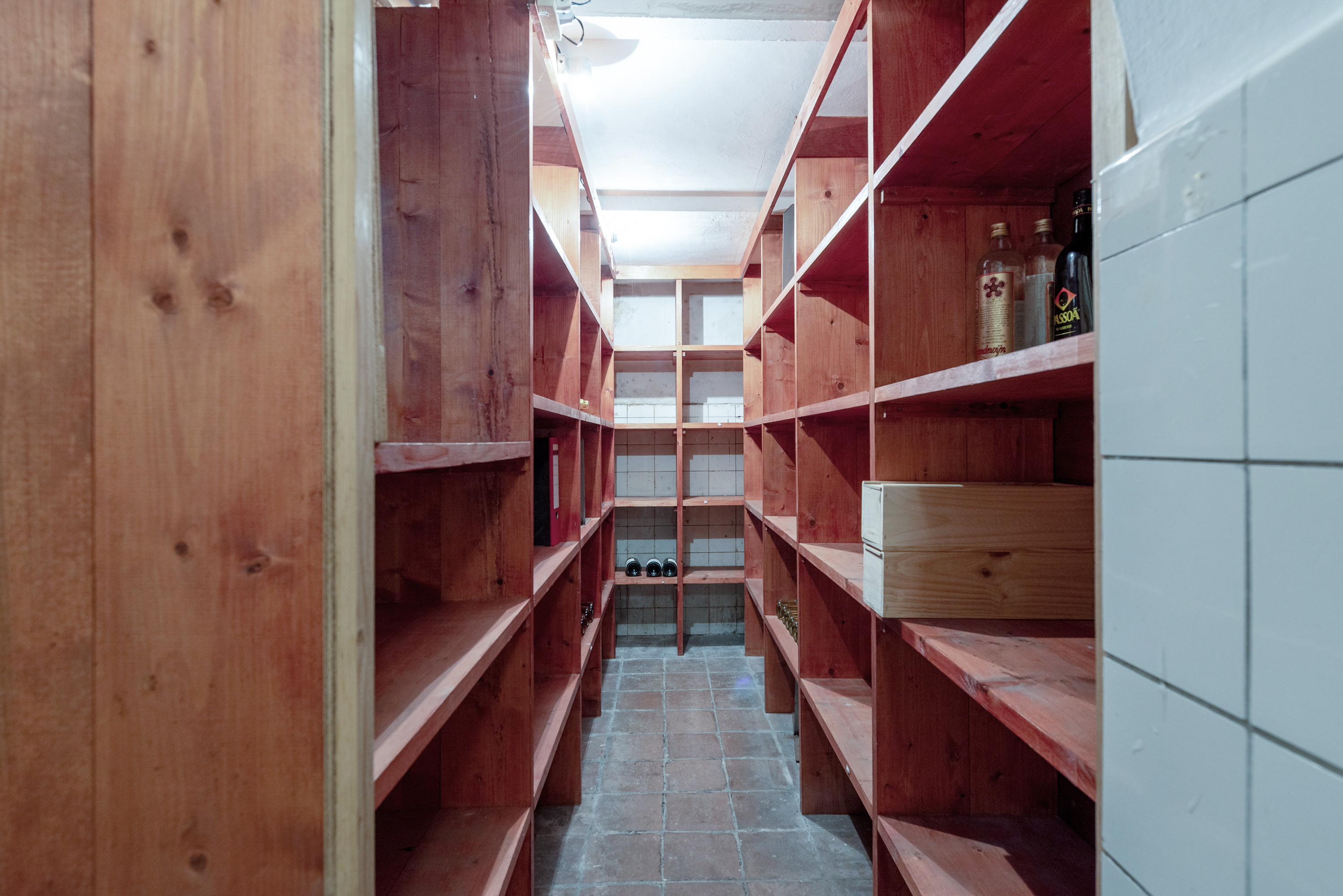 A spacious hall welcomes you with mosaic flooring, leading to an elegant living and dining area with stained glass sliding doors, fireplace, and marble windowsills. This flowing space opens directly to the garden, inviting natural light and outdoor ambiance. The kitchen, set with a semi-open plan and direct garden access, adjoins a practical utility room as well as a cellar of 23 m² arranged in three rooms.