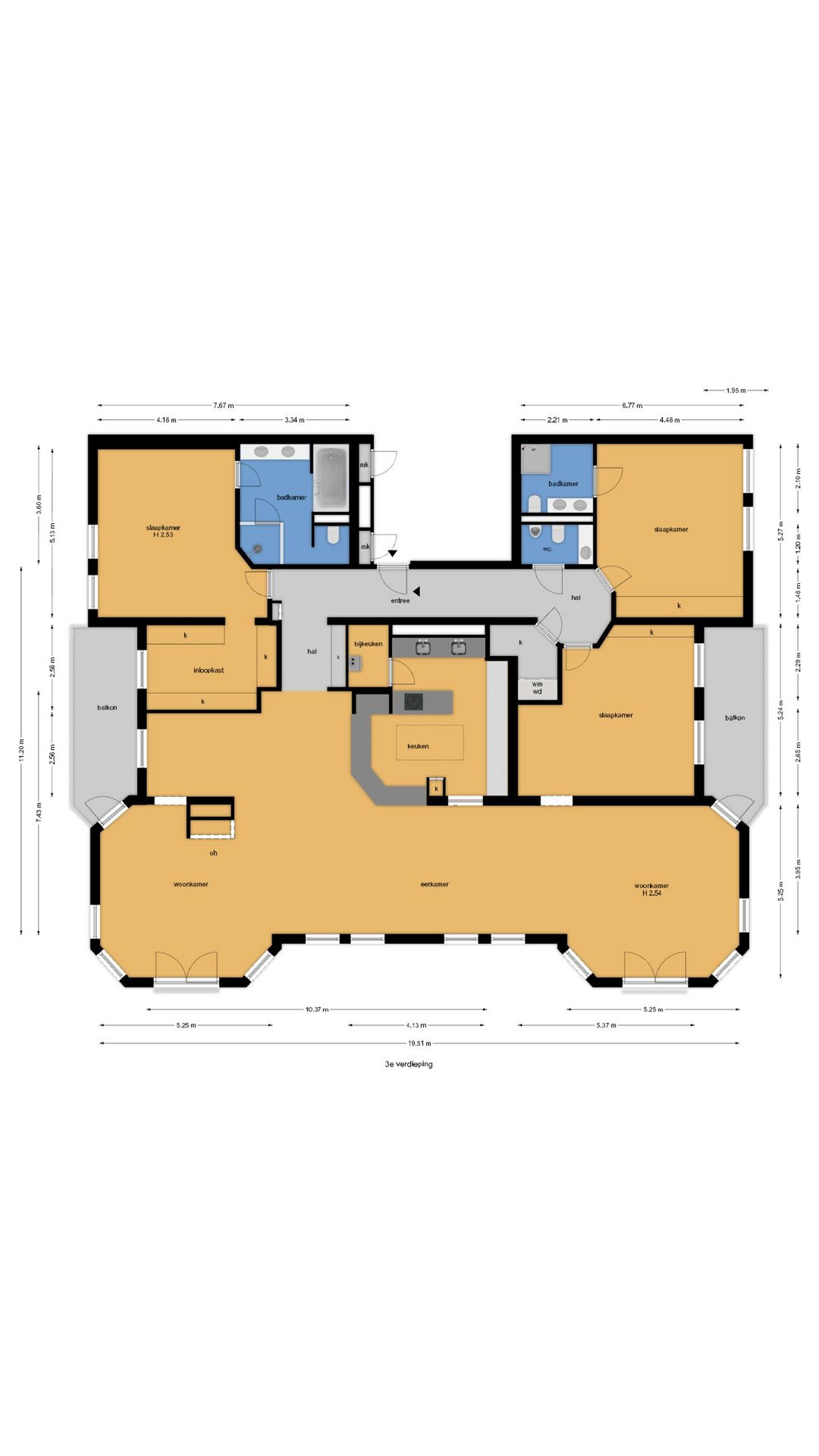 Beautifully situated 4-room penthouse (approx. 265 m² living space) with large balconies on the third floor of a small apartment complex on the Rust en Vreugd Estate. Originally two apartments, it was completely renovated and redesigned in 2009. You will find high-quality materials and luxurious details, including a custom-made interior and air conditioning. There are also two parking spaces and a storage unit in the basement.