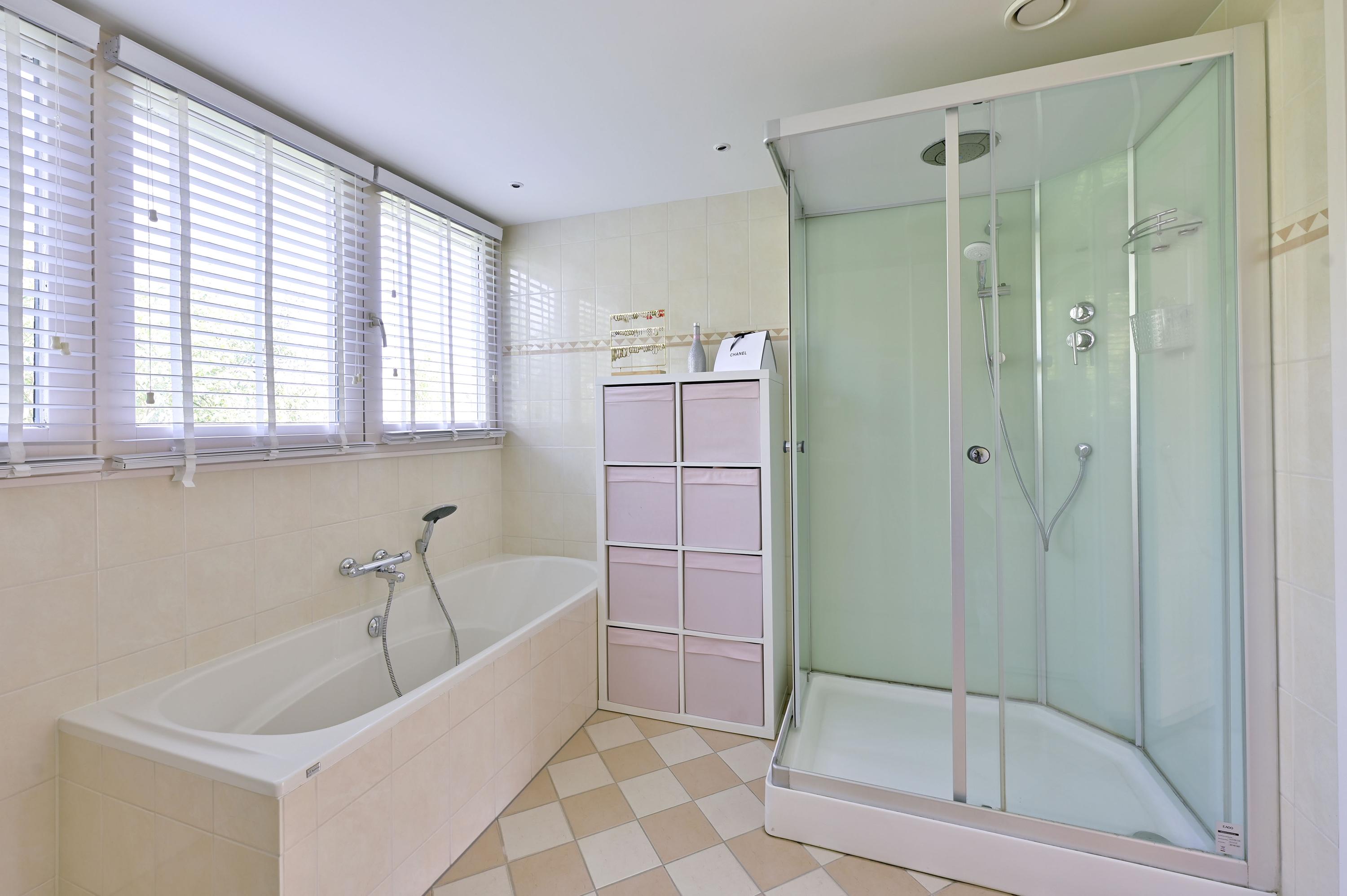 Upon entering, the abundance of natural light and spaciousness immediately stand out. Large windows create a seamless connection between indoors and outdoors, allowing sunlight to flood the living areas. The living room is generously sized and, together with the cosy fireplace, forms the perfect place to relax. Adjacent is the atmospheric kitchen-diner — a true family space where cooking and spending time together go hand in hand. The villa features no fewer than seven bedrooms, spread over several floors, making it ideal for large families, those working from home, or anyone simply seeking ample living space. A unique feature is the presence of two bathrooms, one of which is located on the ground floor, adjacent to a spacious bedroom. This is ideal for single-level living, hosting guests, or creating a practice space with private sanitary facilities. The second bathroom, located on the first floor, also offers plenty of comfort for daily use. A large basement adds extra functionality to the home and can serve as a pantry or wine cellar.