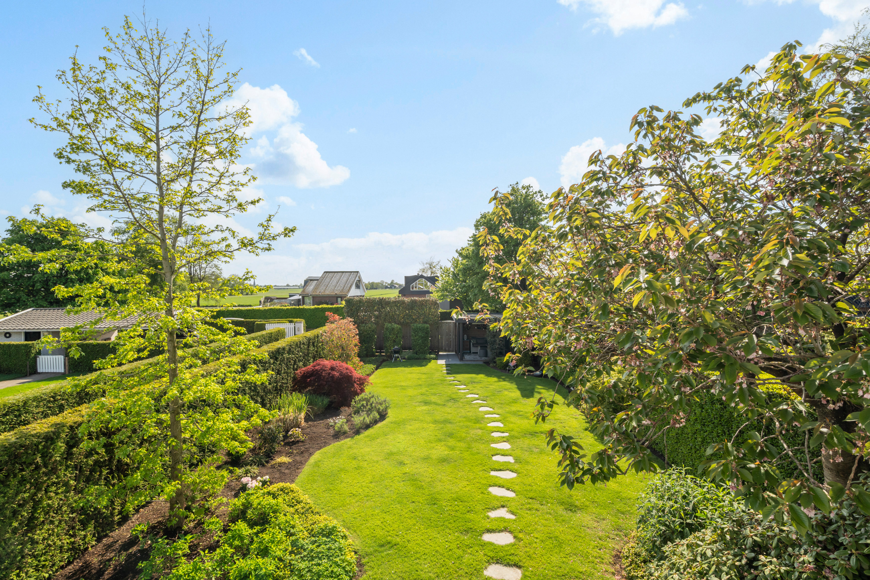 The beautifully landscaped garden offers the ultimate outdoor experience: peace, greenery, and water come together in a unique way.