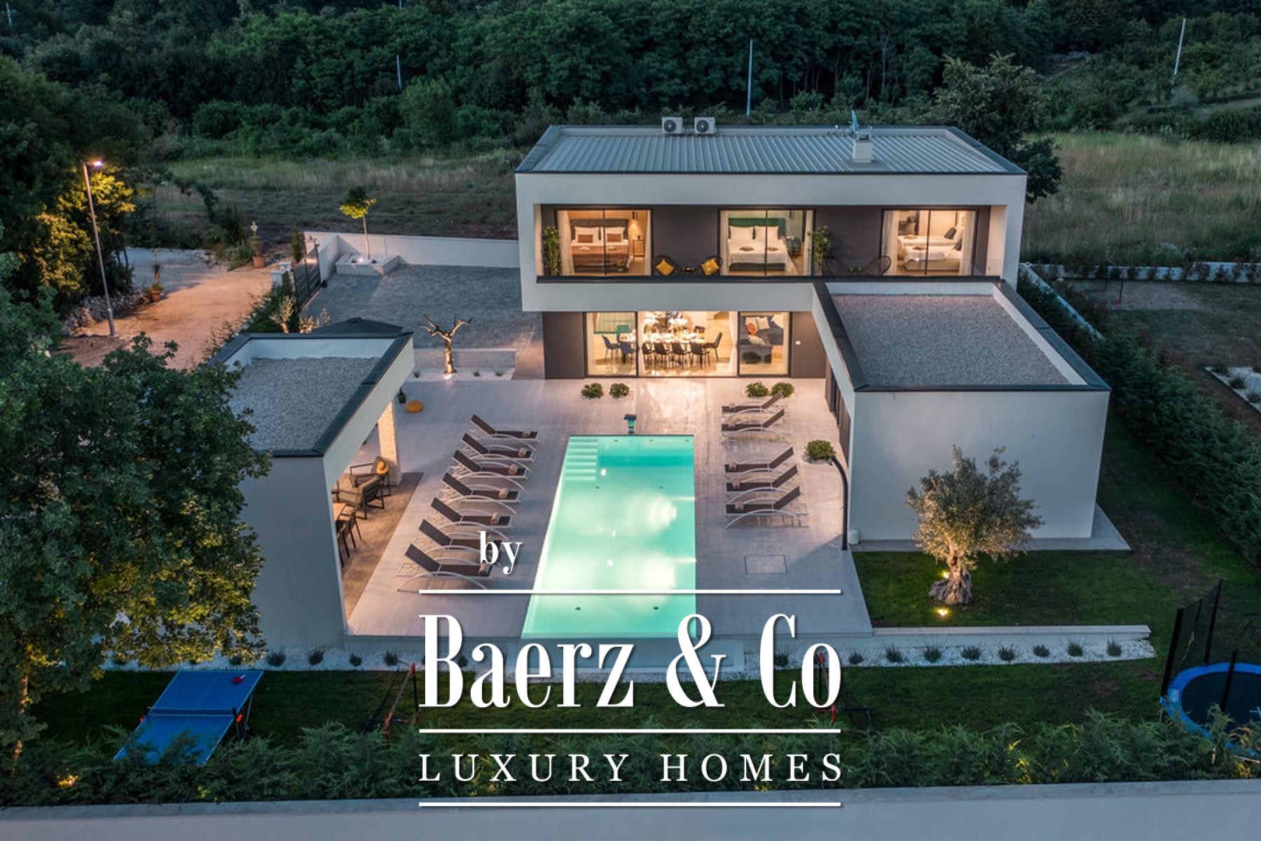 In central Istria, in the small village of Šivati, this modern villa with a total living area of 308 m2 is located, with an additional building of 34 m2, an outdoor pool, a sauna, a jacuzzi on a plot of 1136 m2.The villa is spread over two floors, on the first floor on the ground floor there is one bedroom with its own bathroom, a spacious living room with a kitchen and a dining area in an open space.On the ground floor, we would definitely highlight an additional building of 34 m2 where there is a bedroom with its own bathroom, a sauna and a Jacuzzi for relaxation after a hard day.On the first floor, there are three comfortable bedrooms, each with its own