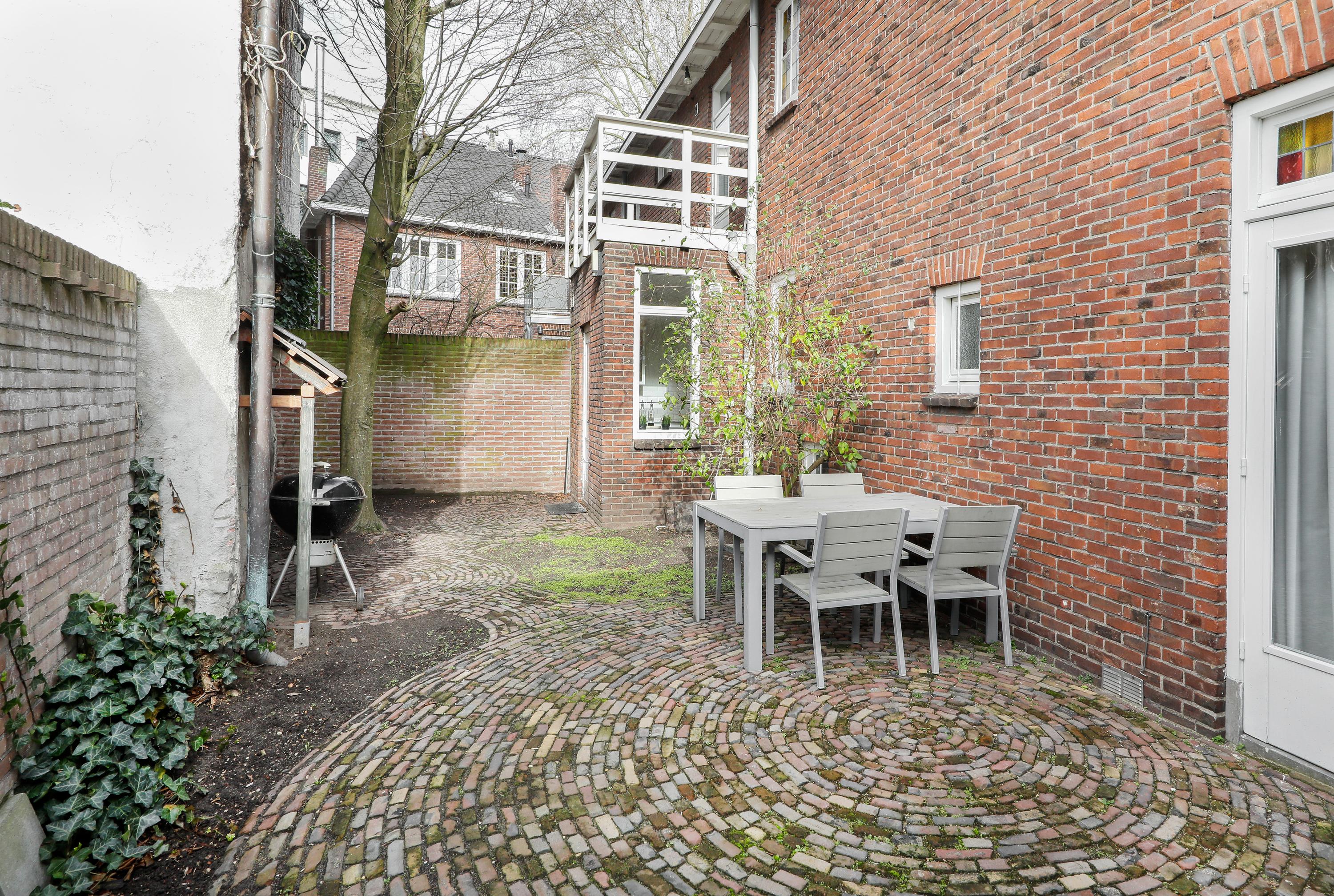 La vivienda adosada 'S-Hertogenbosch Museum Quarter destaca como una propiedad excepcionalmente amplia con un exuberante jardín trasero, situada en la encrucijada entre la vitalidad cultural y la tranquilidad de la naturaleza. Esta residencia de los años treinta se extiende a lo largo de una imponente fachada de aproximadamente once metros, inundando los espacios de luz y proyectando una presencia urbana segura.