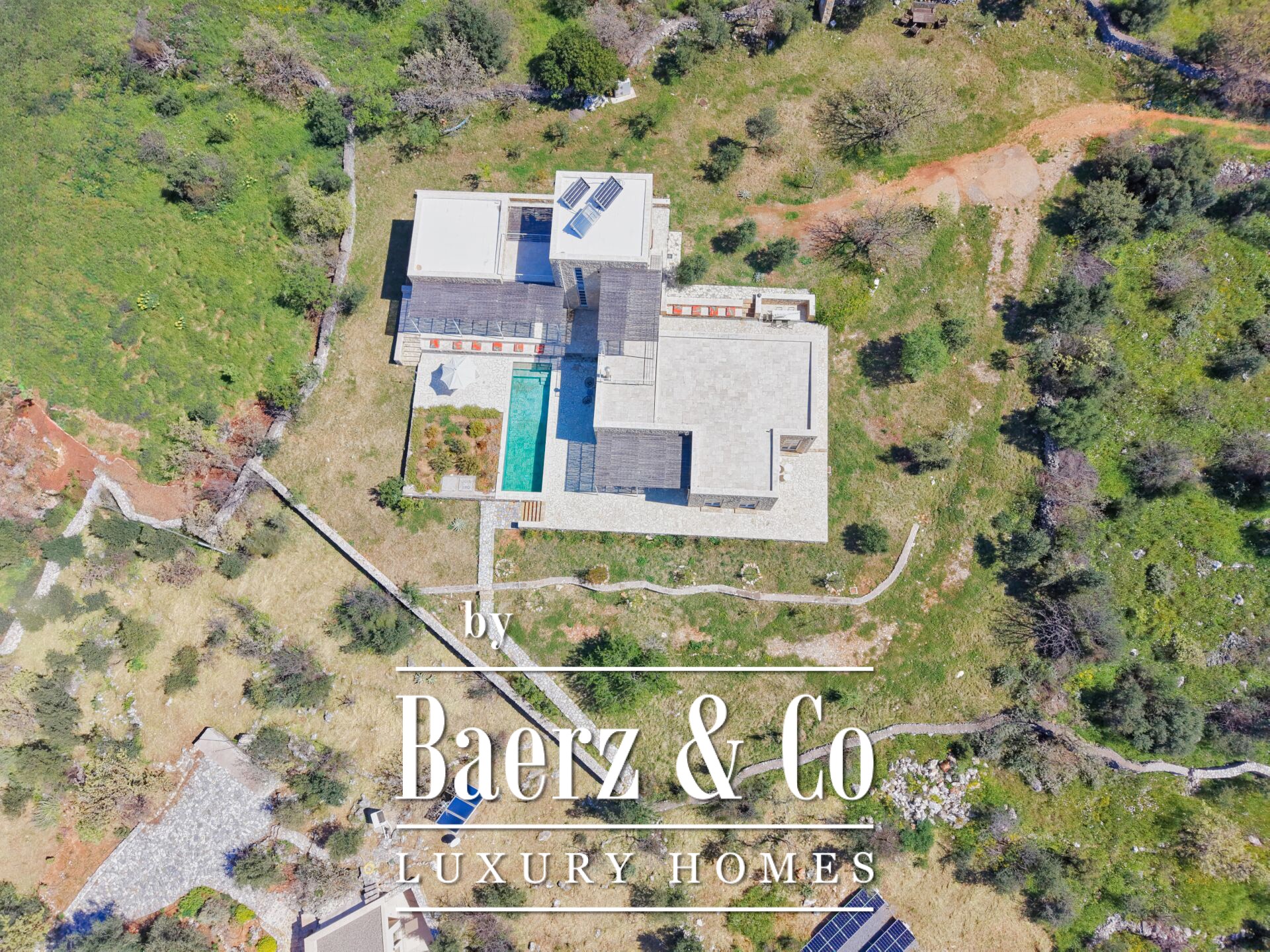 En el exterior, un jardín ajardinado con árboles rodea una piscina privada de 30 m² y una zona de barbacoa. Completan las comodidades cámaras de seguridad, conexión a internet, depósitos de agua, trastero, mosquiteras y electrodomésticos. Situada a solo 2,5 km de la playa más cercana y a 2,9 km del centro de Agios Nikolaos, la ubicación ofrece un equilibrio perfecto entre tranquilidad y acceso.