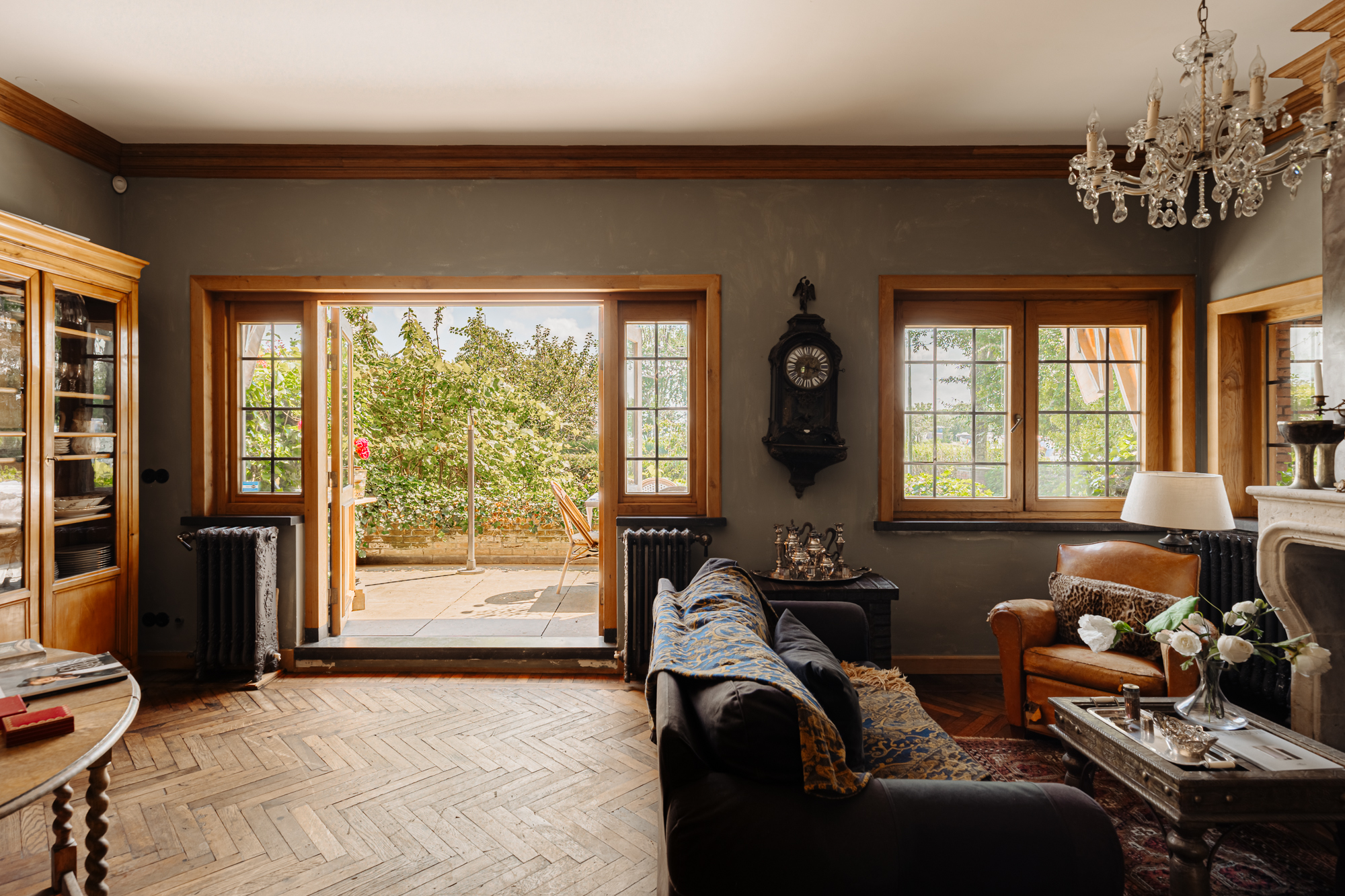 En el interior, la vivienda destaca por su refinado carácter histórico, desde vitrales originales del Palacio de la Paz hasta robustos suelos de madera recuperados de antiguos cuarteles. Cada uno de los cuatro dormitorios y tres baños ofrece un confort detalladamente estudiado, iluminados por luz natural y vistas al jardín o al río.
