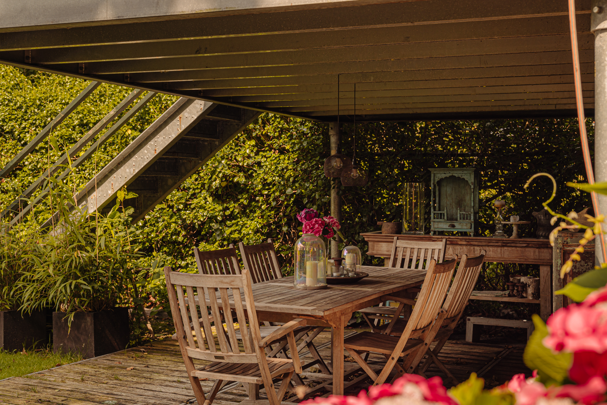 Entre los elementos distintivos se cuentan cuatro chimeneas abiertas, puertas de roble hechas a mano y un tejado de paja aislado. La casa pareada de Amstelveen invita a una vida versátil, con espacio para la familia, el trabajo flexible o la hospitalidad. En el exterior, el amplio jardín y las terrazas brindan privacidad poco habitual, con acceso directo a un amarre privado sobre el Amstel. Es un hogar donde la tranquilidad, el detalle arquitectónico y el acceso tanto a los servicios urbanos como a la naturaleza confluyen con seguridad.
