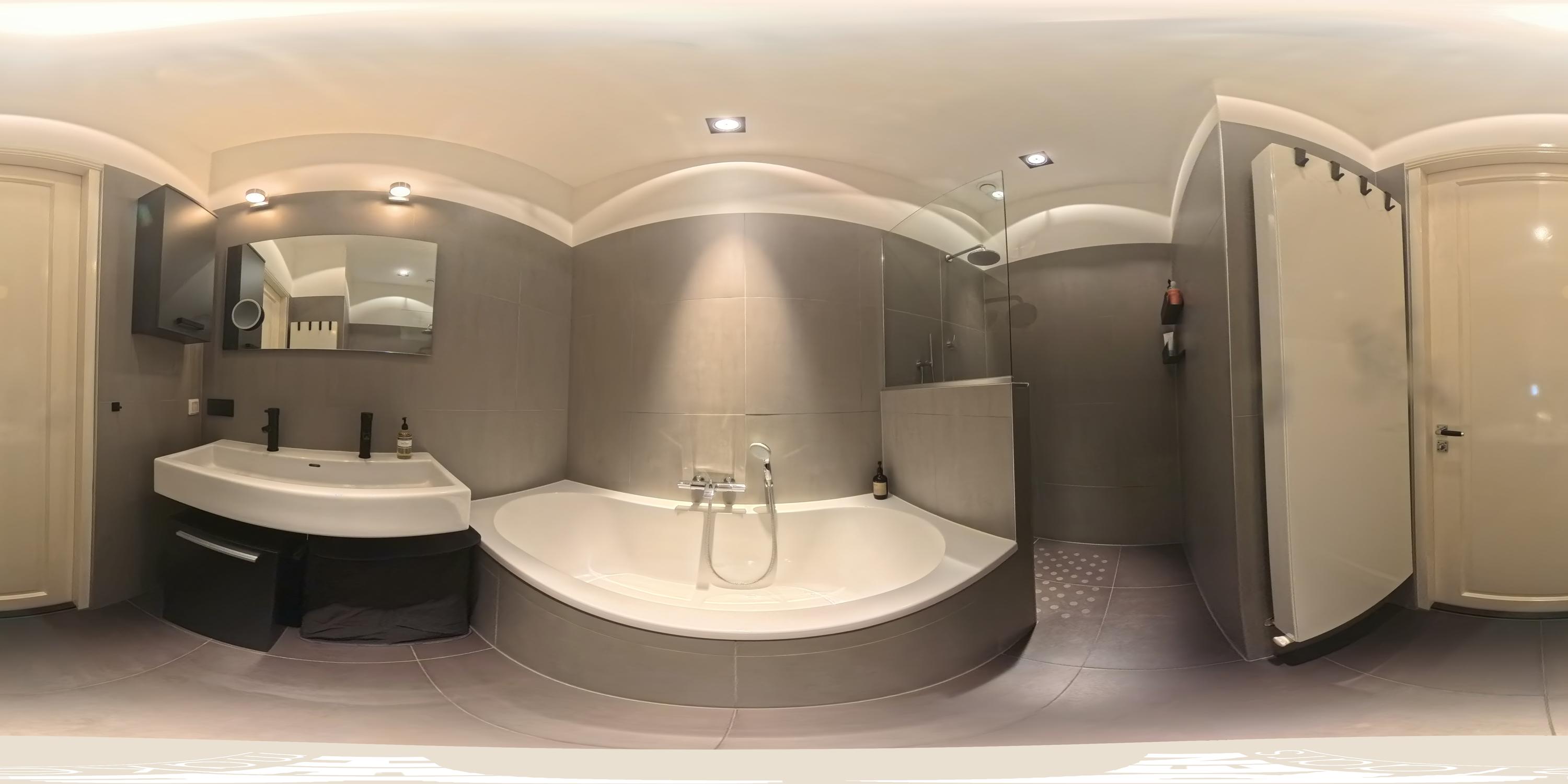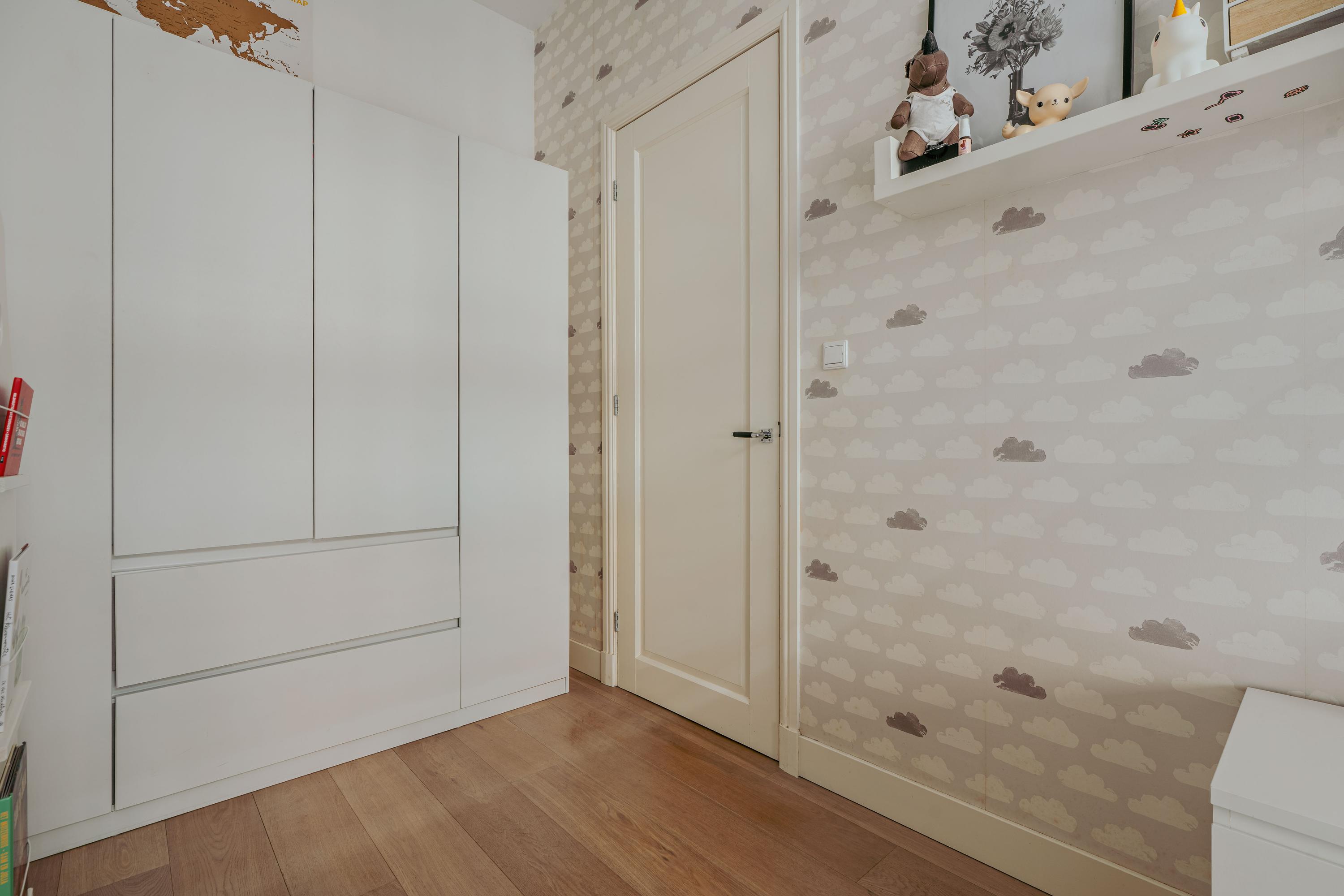 La distribución presenta un generoso espacio de estar y una cocina abierta equipada con isla, electrodomésticos modernos como placa de gas de cinco fuegos, horno combinado, lavavajillas, frigorífico-congelador, congelador adicional y Quooker. Dispone de tres dormitorios y un baño central con bañera, lavabo doble y ducha a ras de suelo. Los techos altos de aproximadamente 3 metros en la mayoría de las estancias refuerzan la sensación de amplitud y luminosidad.