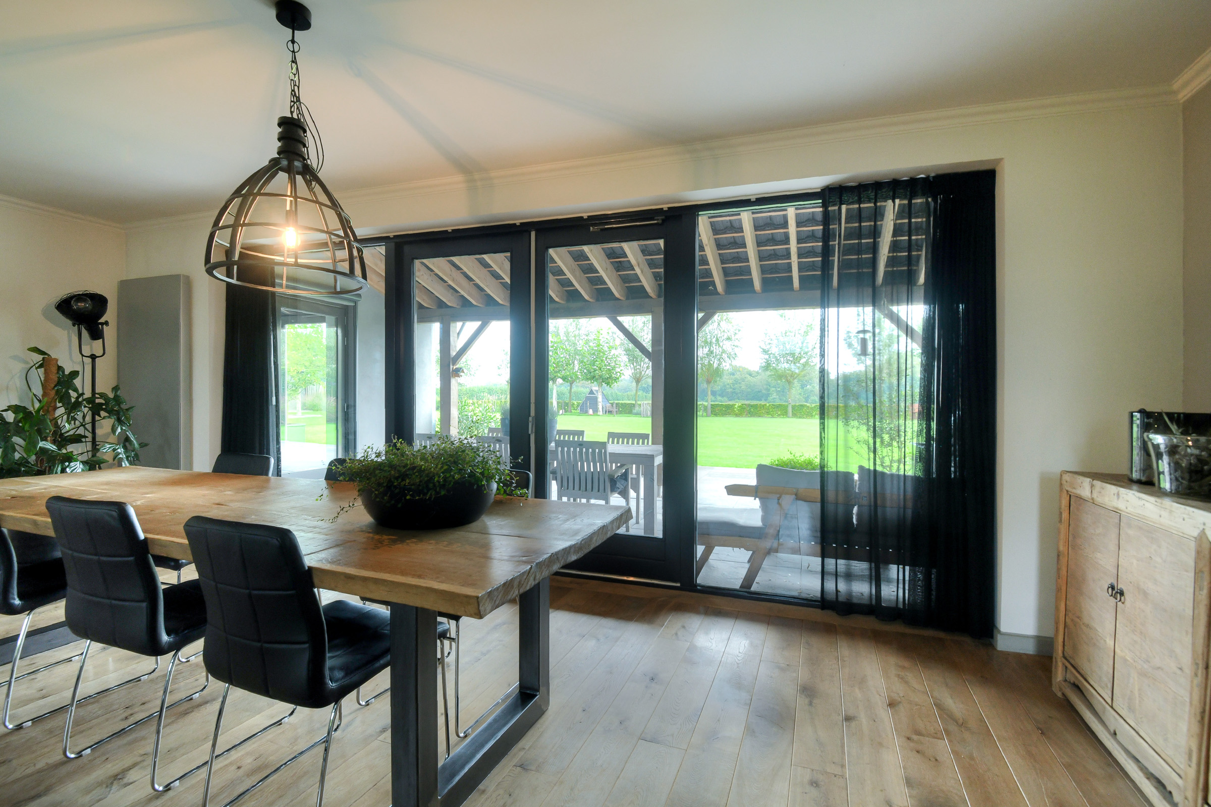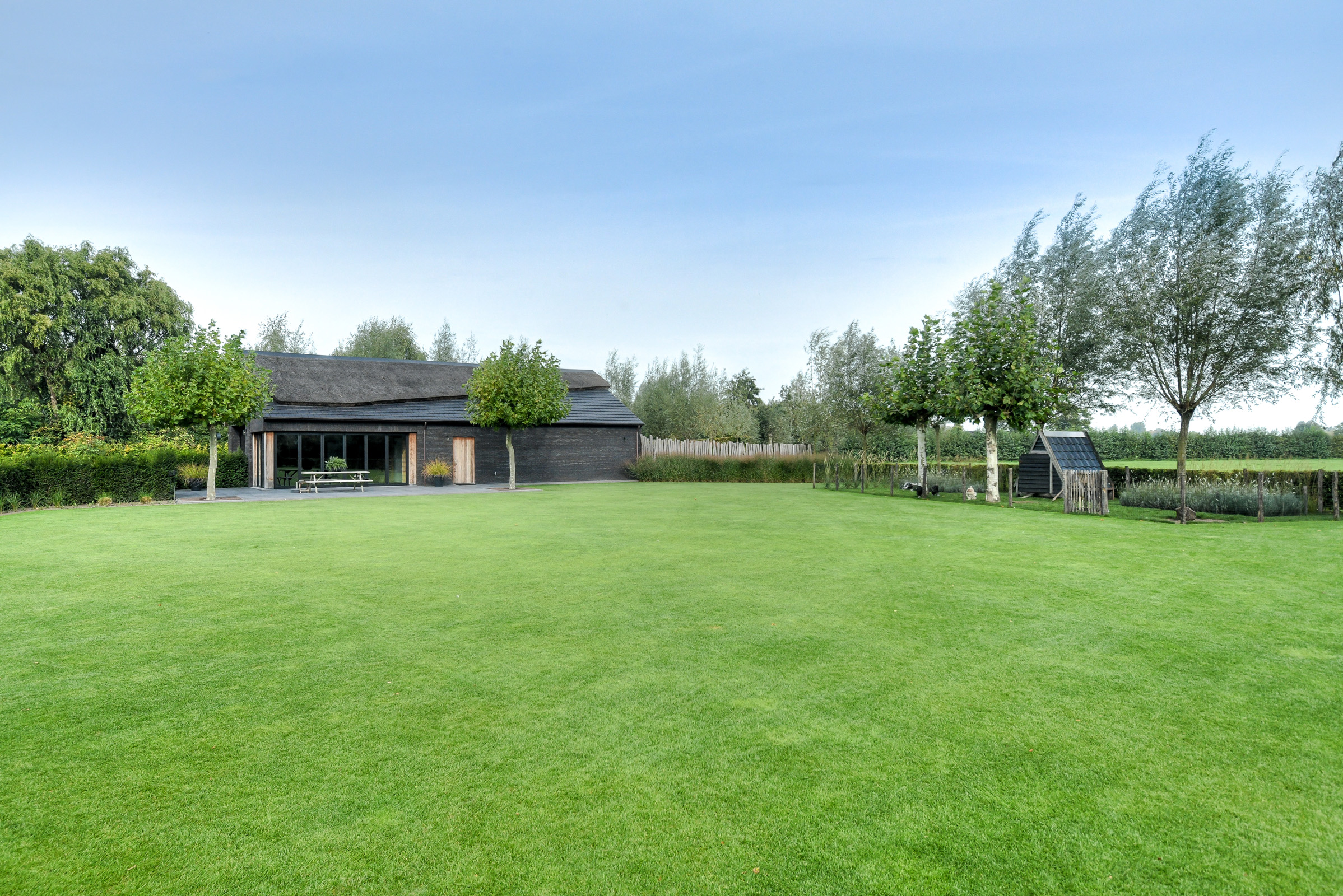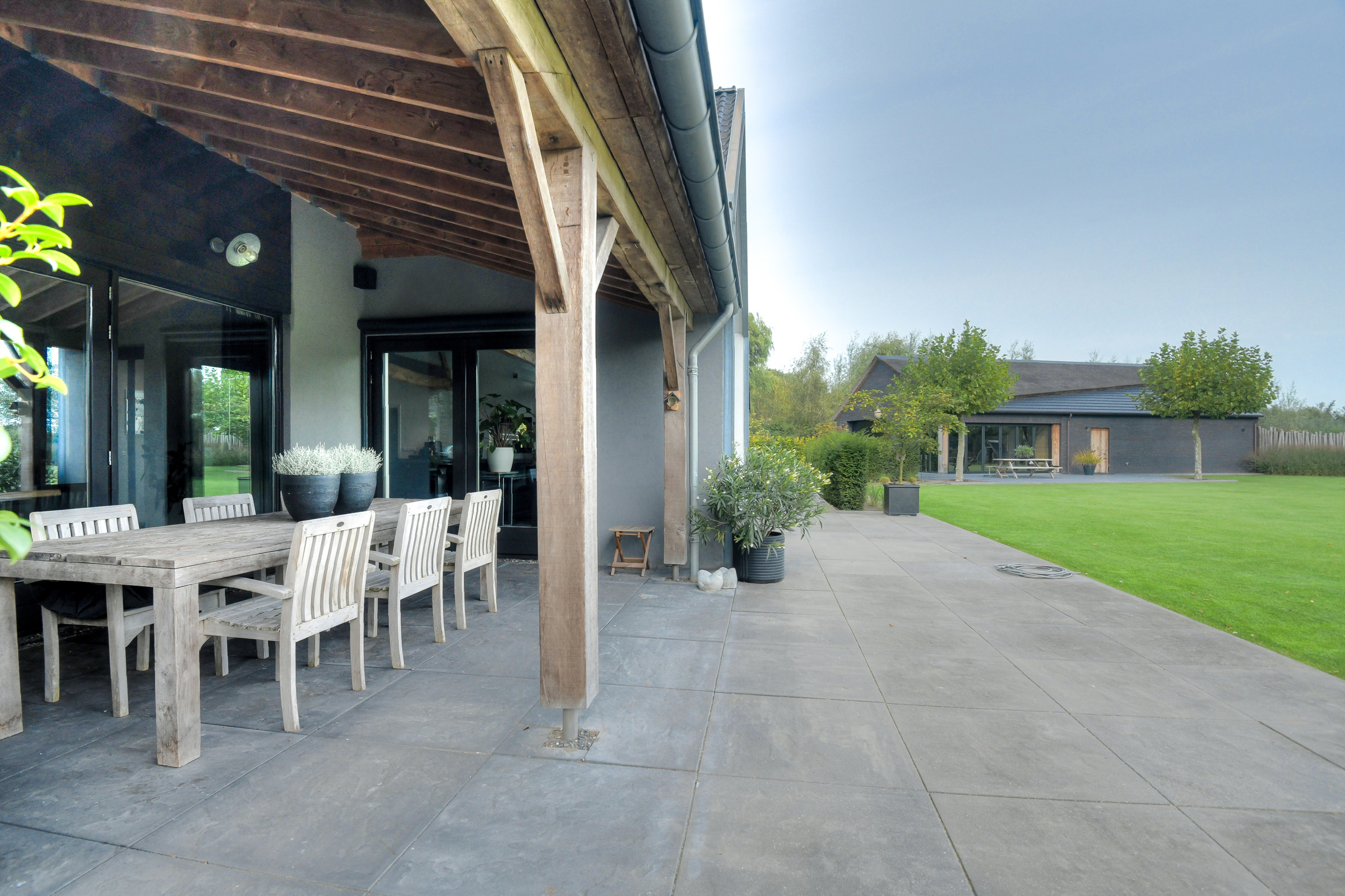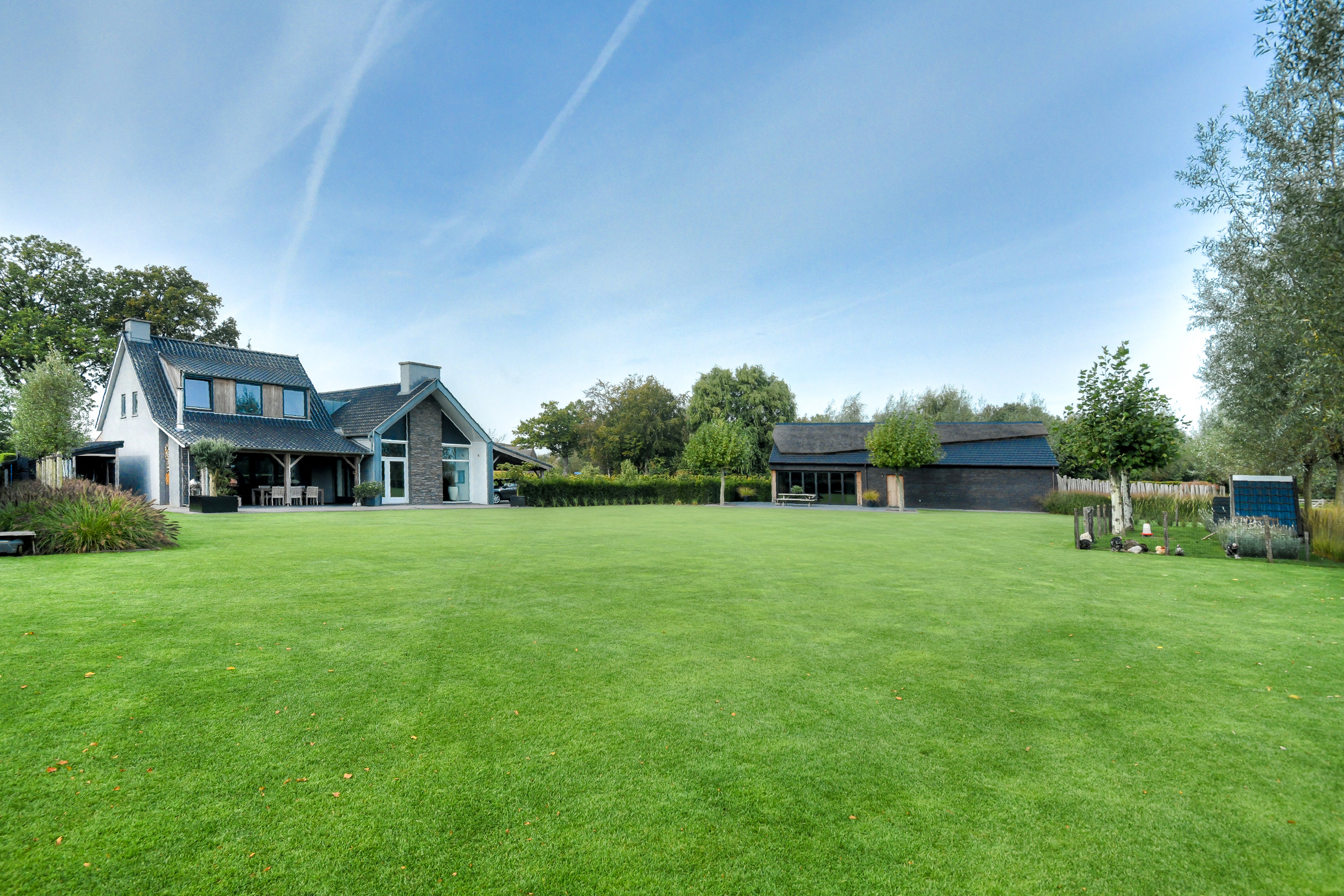 Esta villa independiente en Galder se alza sobre una extraordinaria finca de 25.110 m² lindando con la reserva natural Markdal. Rodeada de vegetación intacta y prados, la propiedad garantiza total privacidad en un entorno natural poco común al sur de Breda. La vivienda principal se despliega sobre 224 m², ofreciendo tres dormitorios completos y una sucesión fluida de espacios de estar. Los suelos de roble aportan calidez al salón con forma de L, donde chimeneas modernas y puertas francesas conducen a una veranda con amplias vistas al paisaje. La cocina-comedor se convierte en el corazón del hogar, realzada por una isla de encimera de hormigón, una cocina Lacanche a gas y puertas dobles al jardín que se abren a céspedes cuidados y a la reserva natural más allá.