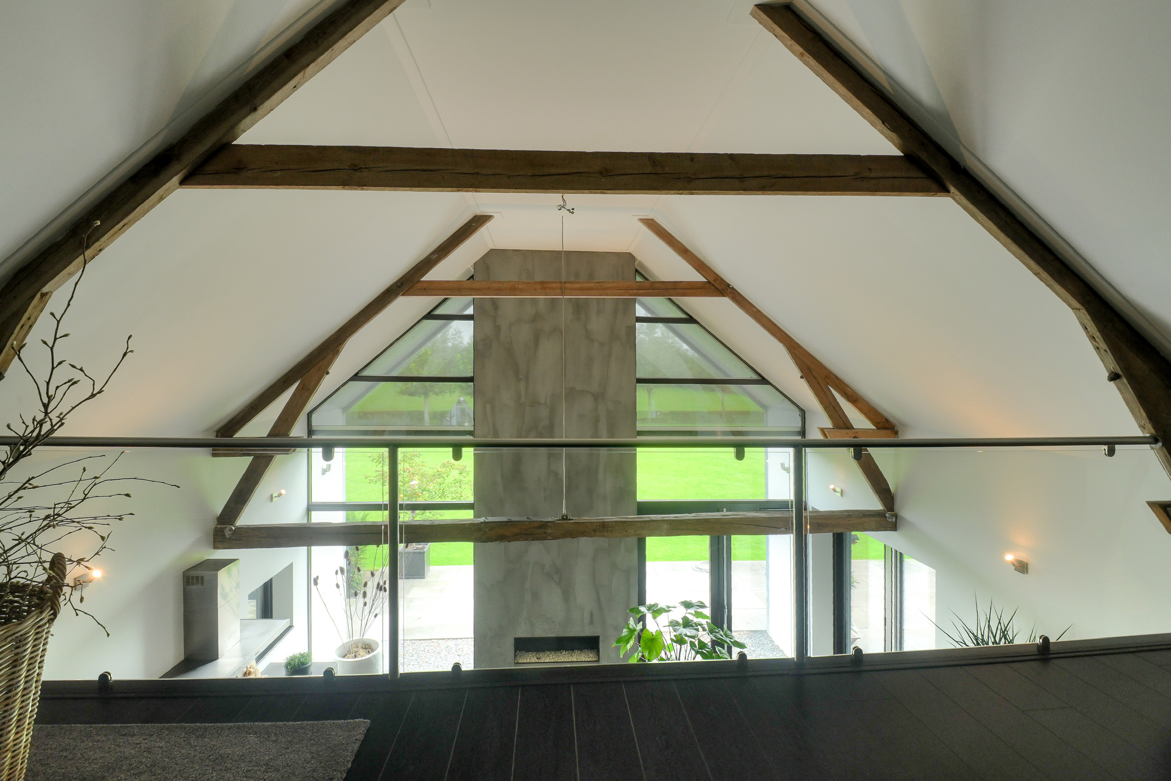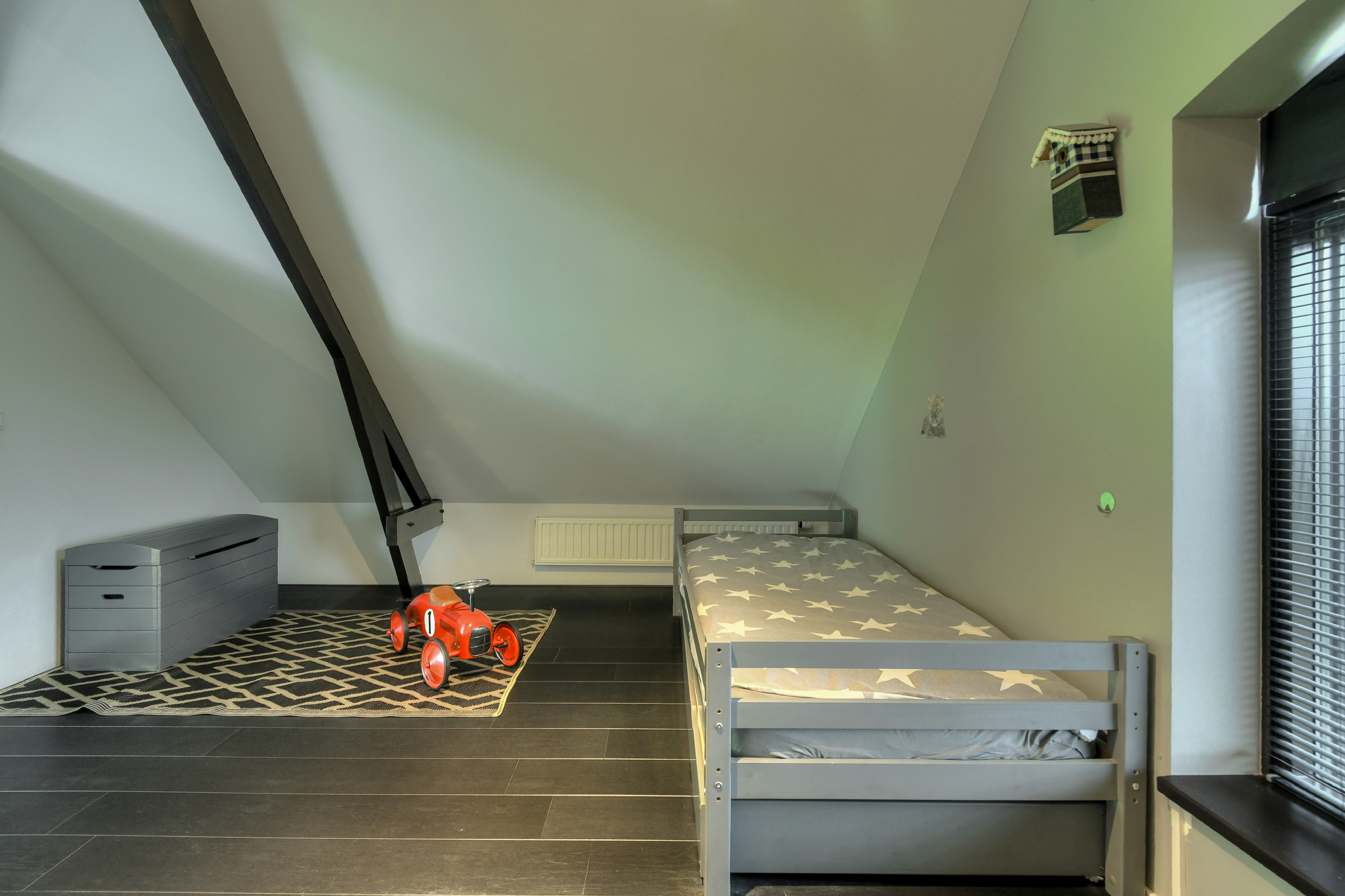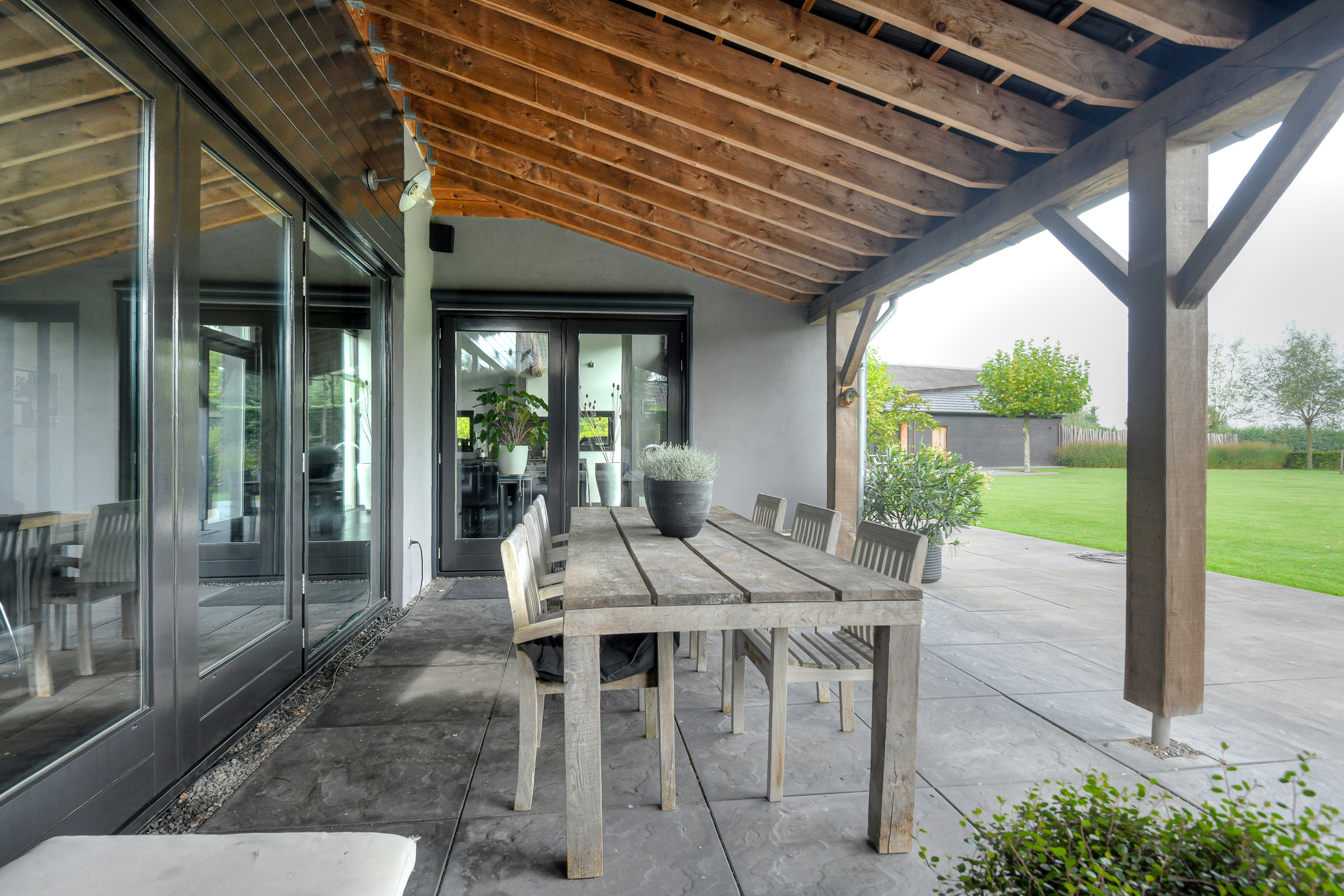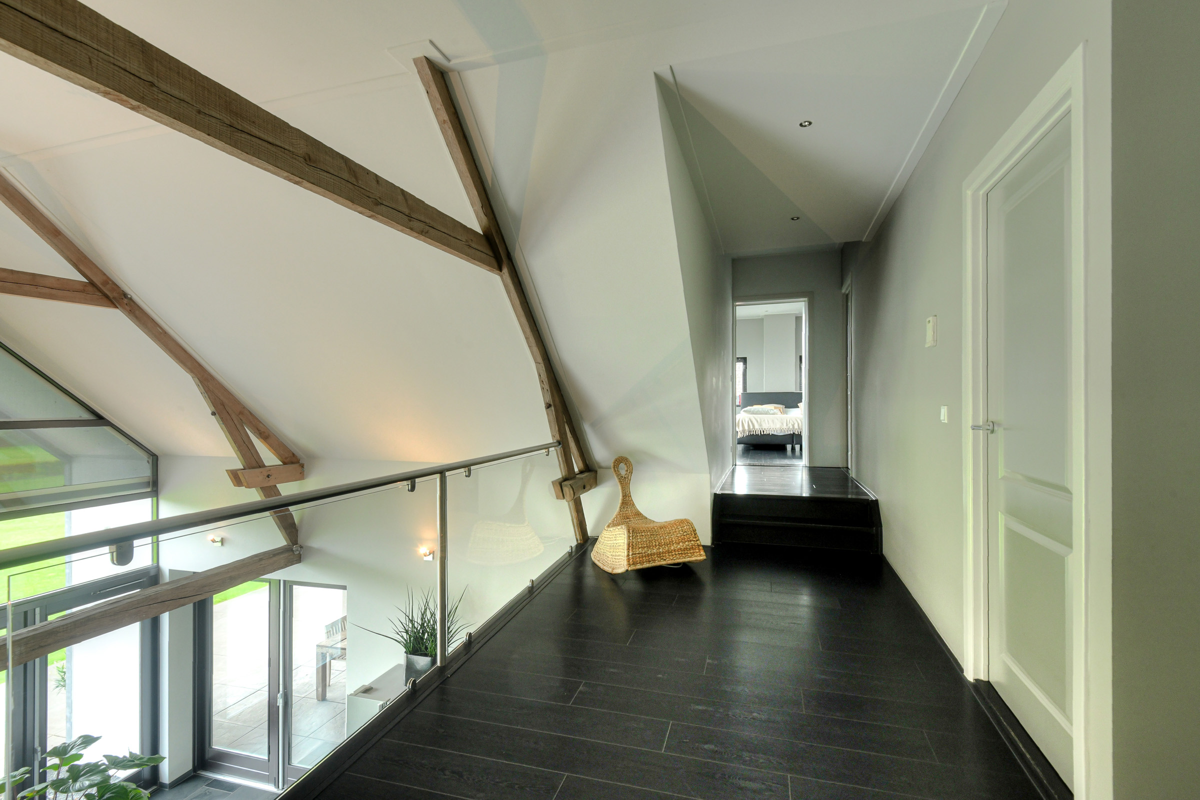 Esta villa independiente en Galder se alza sobre una extraordinaria finca de 25.110 m² lindando con la reserva natural Markdal. Rodeada de vegetación intacta y prados, la propiedad garantiza total privacidad en un entorno natural poco común al sur de Breda. La vivienda principal se despliega sobre 224 m², ofreciendo tres dormitorios completos y una sucesión fluida de espacios de estar. Los suelos de roble aportan calidez al salón con forma de L, donde chimeneas modernas y puertas francesas conducen a una veranda con amplias vistas al paisaje. La cocina-comedor se convierte en el corazón del hogar, realzada por una isla de encimera de hormigón, una cocina Lacanche a gas y puertas dobles al jardín que se abren a céspedes cuidados y a la reserva natural más allá.