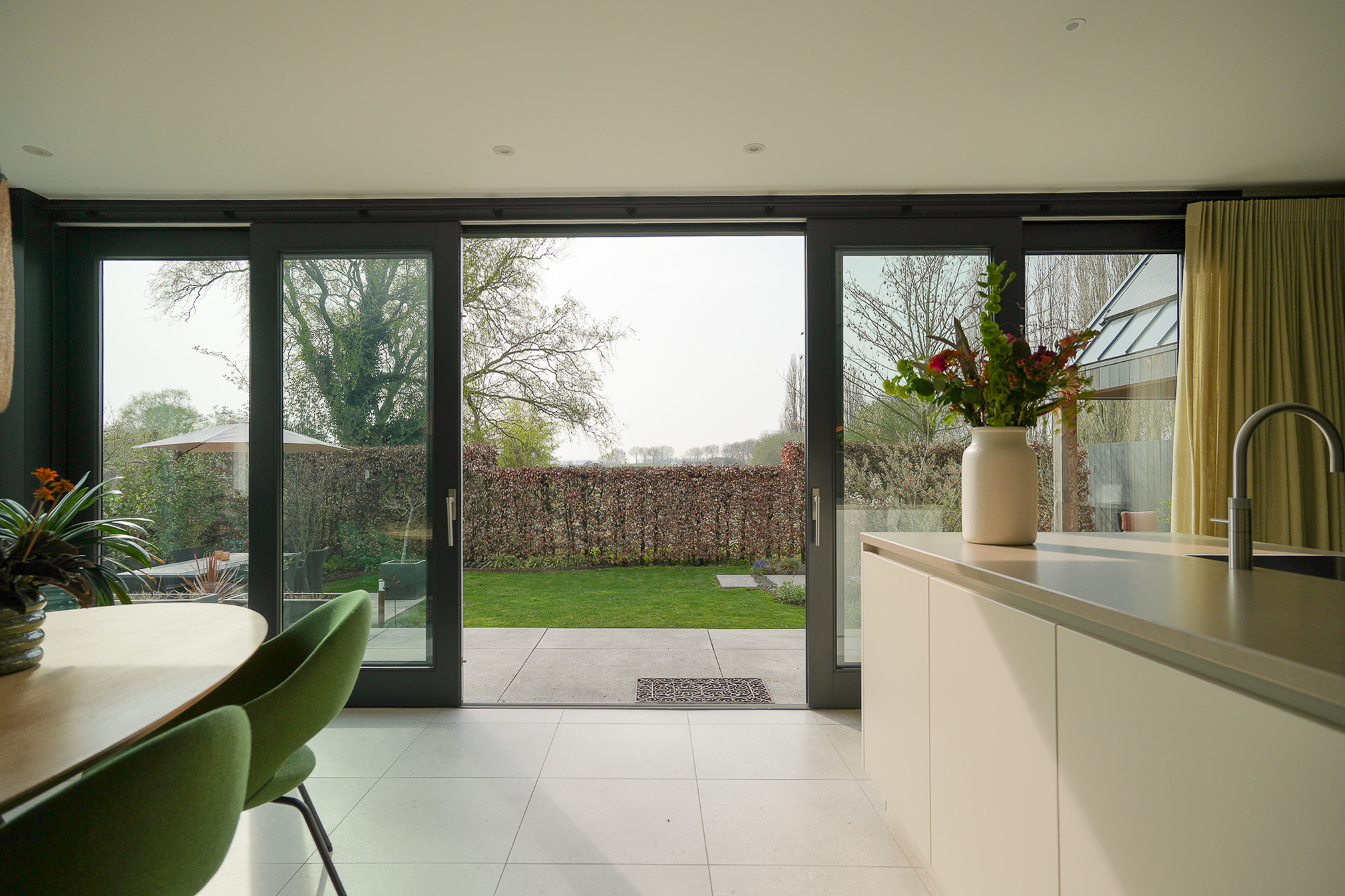 Un anexo aislado con suelo radiante colinda con el jardín; actualmente se utiliza como garaje pero ofrece posibilidades como estudio o espacio de trabajo. La ubicación permite fácil acceso a actividades al aire libre, servicios del pueblo y vías principales, ofreciendo el espacio, confort y accesibilidad que definen esta casa con carácter en Hurwenen.