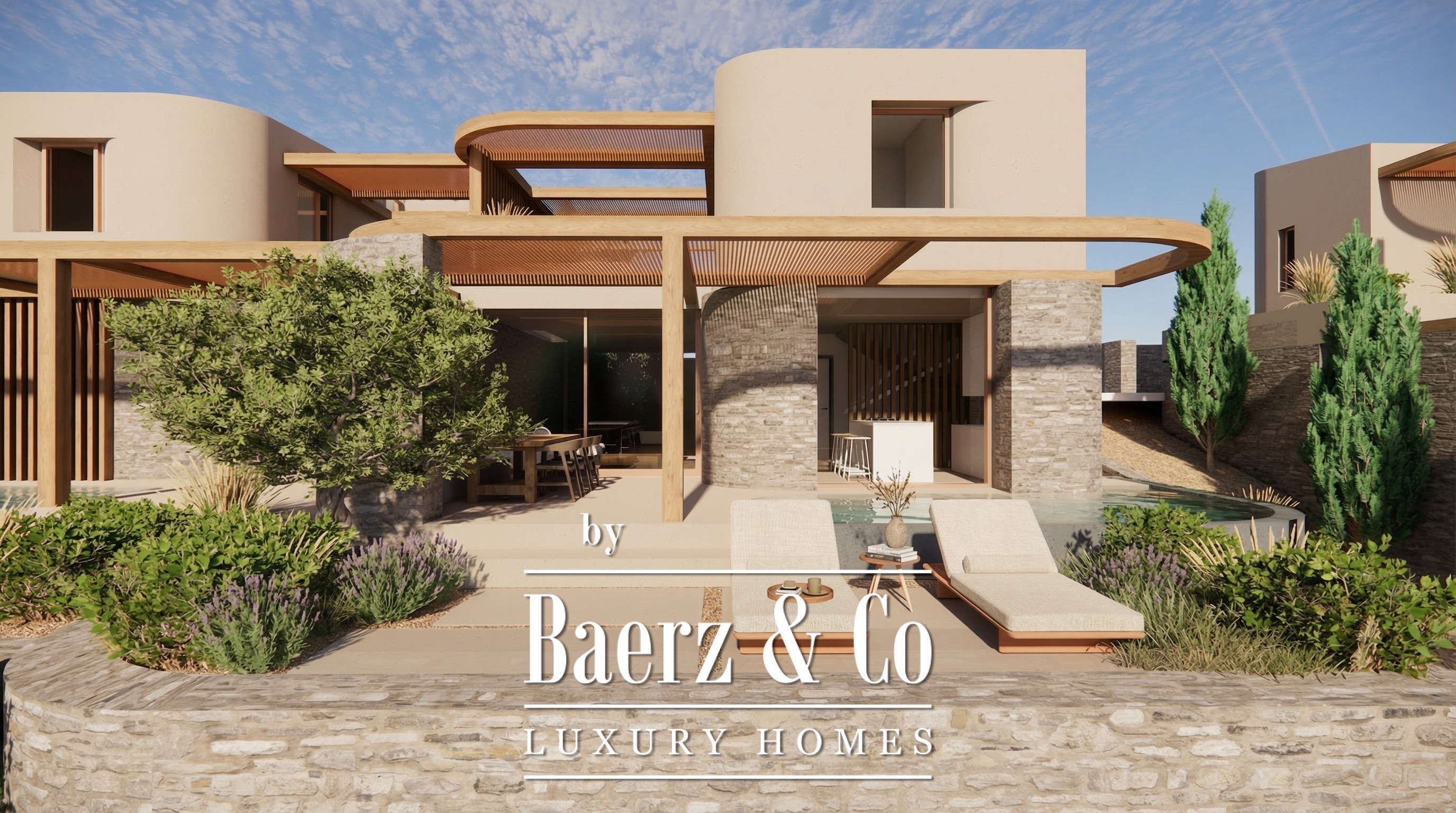 Cada vivienda disfruta de inmejorables vistas panorámicas y cuenta con espacios exteriores sombreados, terrazas ajardinadas en la azotea, piscina y acceso directo a zonas privadas y comunes. Los muros de piedra, pérgolas y elementos acuáticos conforman un entorno residencial armónico, basado en una integración entre forma y función. La infraestructura completa, que incluye pozo privado y redes de suministros integrales, garantiza una vida moderna y sin complicaciones.