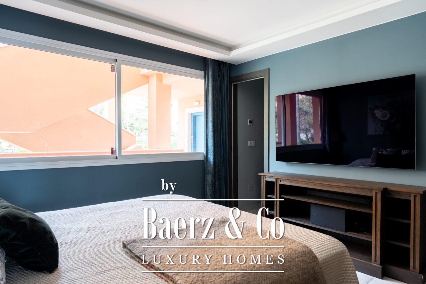 Dos de los dormitorios disponen de baño en suite, mientras que el principal se completa con vestidor. La calefacción por suelo radiante está presente en todo el apartamento, y tanto la cocina como los baños presentan acabados de alta calidad. El complejo seguro y codiciado se encuentra a poca distancia a pie del Club de Golf Los Naranjos, su restaurante y otros servicios, con la playa y Puerto Banús a solo unos minutos en coche.