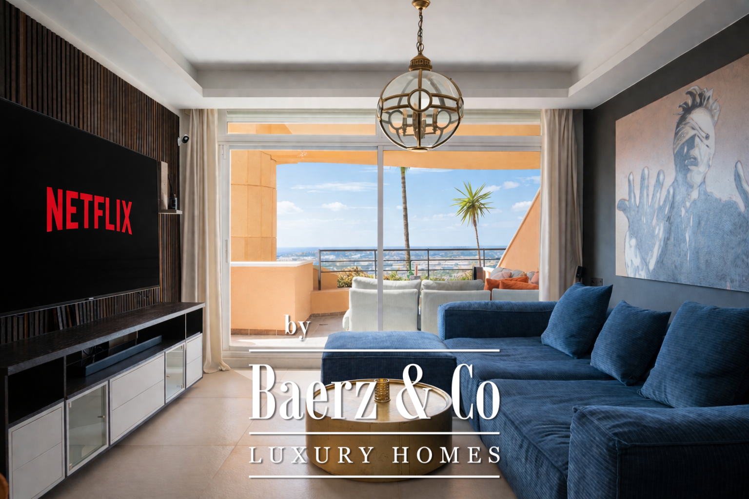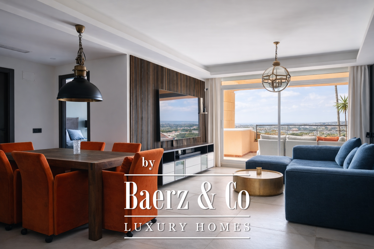Apartamento en Marbella con vistas panorámicas al mar y al campo de golf, que ofrece un entorno de vida recién renovado, diseñado para el confort y la distinción discreta. Esta vivienda cuenta con tres dormitorios y tres baños, donde la cocina de concepto abierto se integra perfectamente en el salón, realzado por amplias puertas correderas que dan acceso a una generosa terraza. La luz natural inunda los espacios interiores, y todos los dormitorios cuentan con acceso directo a la terraza para una sensación continua de amplitud.