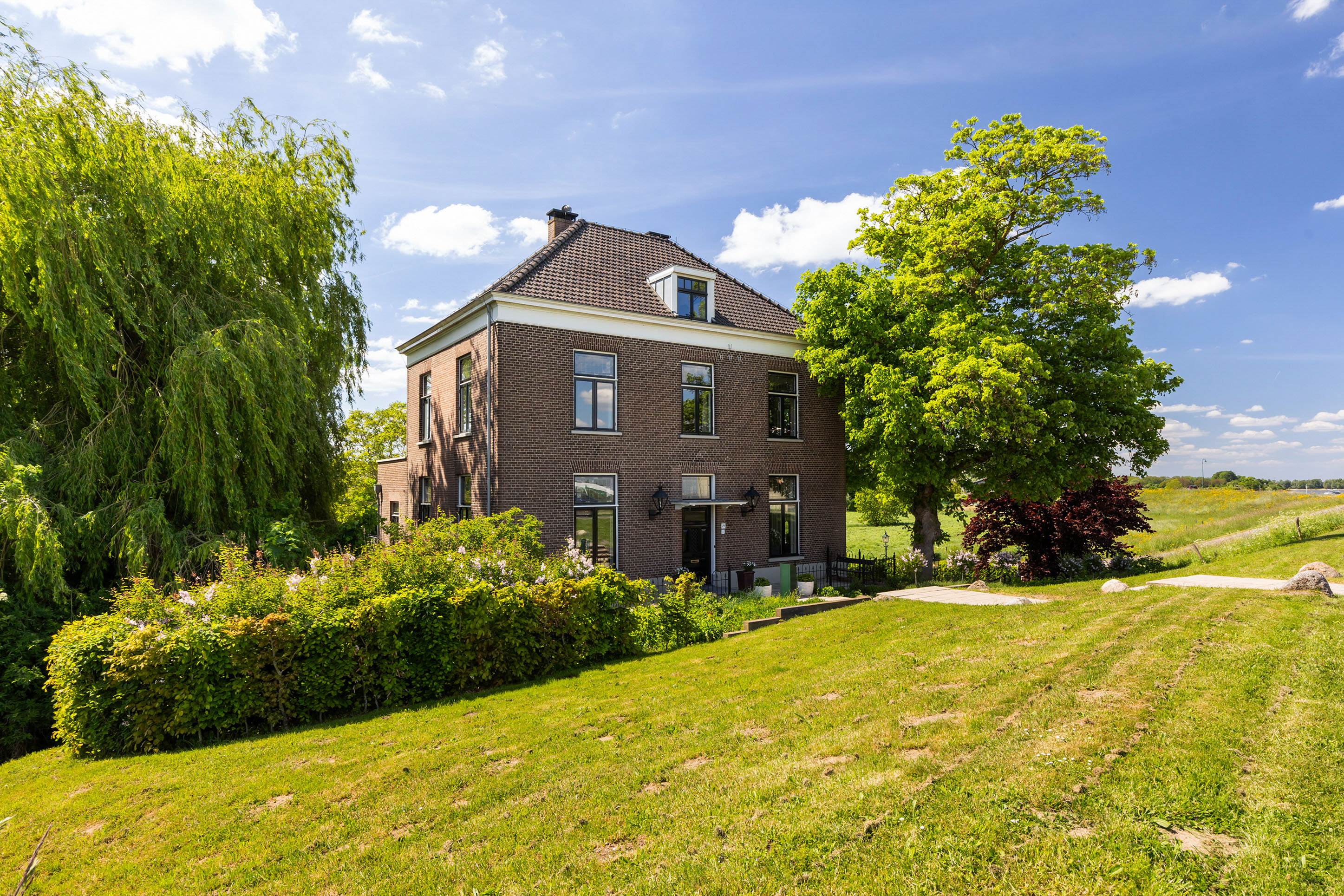 La Villa Millingen aan de Rijn se sitúa al borde de la reserva natural protegida Gelderse Poort, elevada por encima de la confluencia de los ríos Rin y Waal. Esta villa, originalmente residencia de un administrador de hacienda, ha sido restaurada meticulosamente para combinar la riqueza histórica con un lujo contemporáneo discreto. La propiedad se encuentra dentro de una parcela totalmente cerrada de 1.334 m², donde los jardines paisajísticos ofrecen privacidad escalonada, serenidad y vistas al agua y al campo.