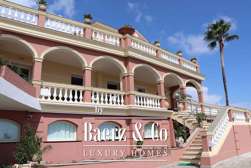 En la planta superior se encuentran ocho dormitorios y seis baños. La suite principal incluye despacho, vestidor, baño privado con jacuzzi y acceso exclusivo a la terraza. La villa está rodeada por un terreno de 2.000 m² que equilibra privacidad y posibilidades para el entretenimiento. Esta propiedad ofrece una perspectiva privilegiada para quienes valoran la luz mediterránea y la serenidad costera.