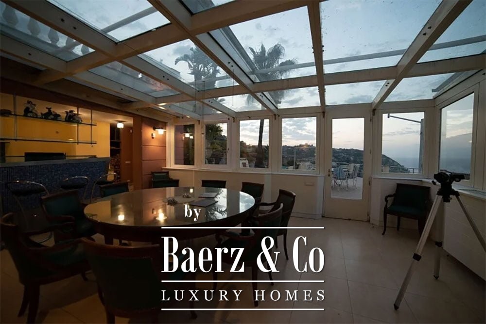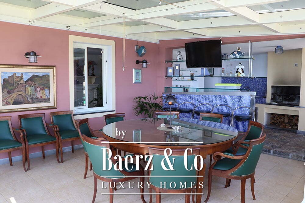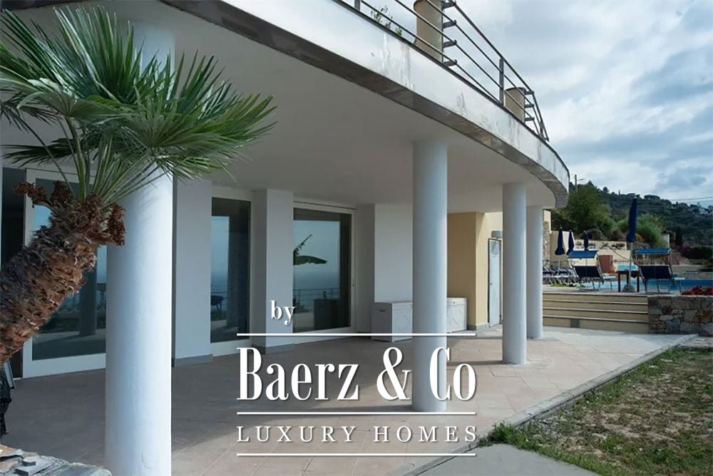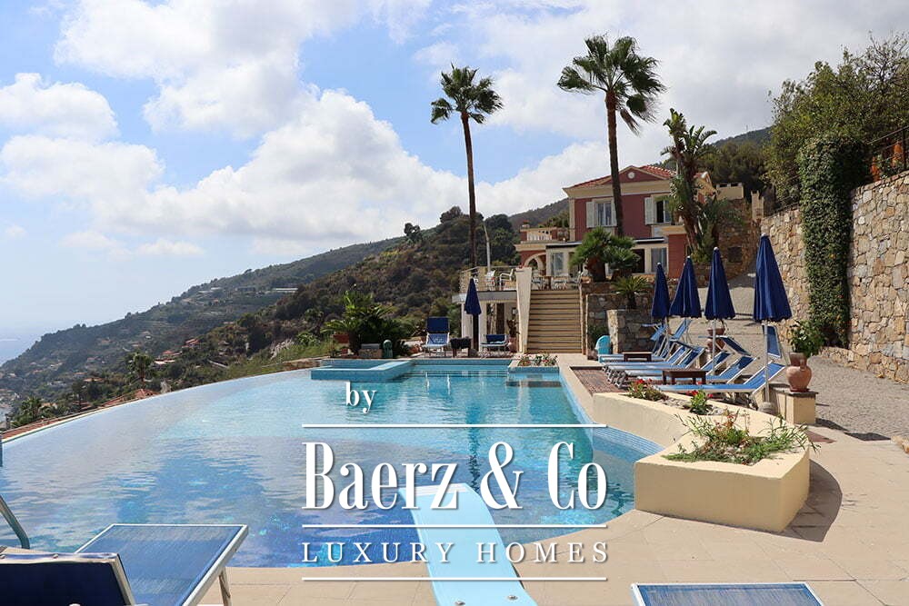 Villa Ospedaletti ofrece una invitación única para disfrutar de una vida refinada por encima de la costa de esta elegante ciudad italiana. La villa ocupa 507 m² distribuidos en dos niveles cuidadosamente concebidos, con amplias vistas de 180 grados sobre la bahía de Ospedaletti y el mar Mediterráneo. El diseño de la villa aprovecha la luz natural y el dramatismo del entorno en ladera, fomentando una atmósfera de discreción serena.