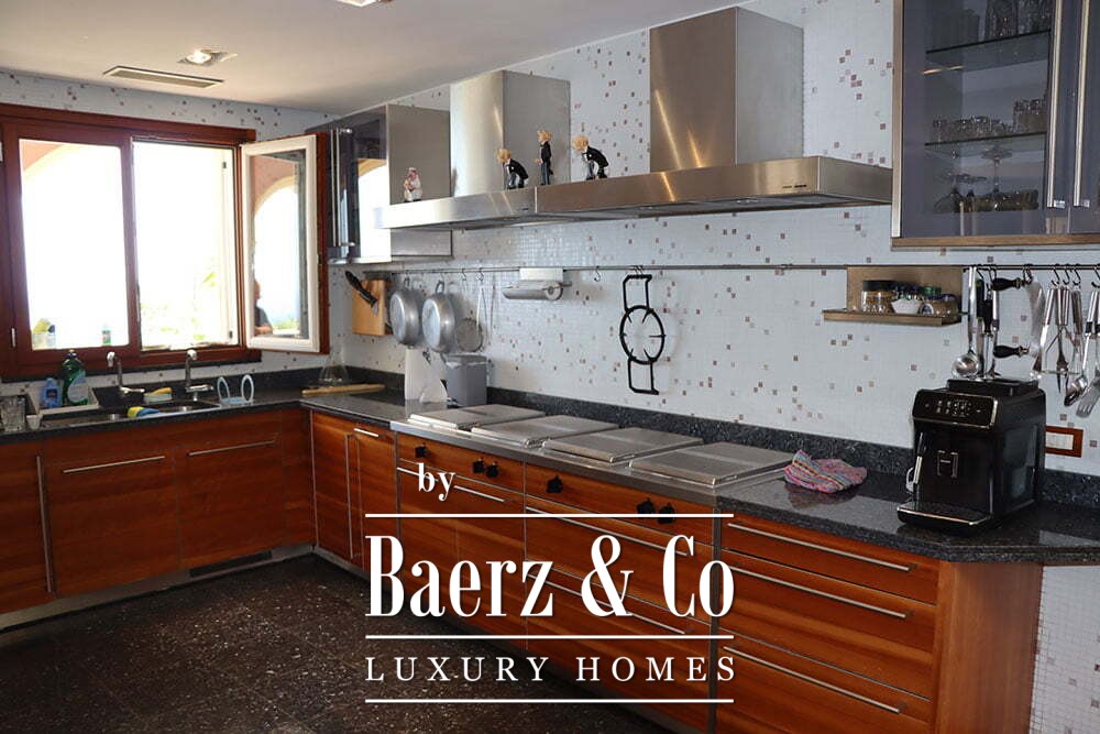 La planta baja gira en torno a un amplio salón, donde una cocina profesional abierta se integra perfectamente con el comedor. Anexa a esta zona se encuentra un jardín de invierno con una segunda cocina y barbacoa, cerrado pero abierto a espectaculares vistas al mar. Entre sus características prácticas destaca un gran garaje con capacidad para varios coches, ducha independiente para la piscina y lavandería. La planta baja conecta directamente con un pórtico que conduce a las terrazas y a una piscina infinita climatizada que se funde con el horizonte.