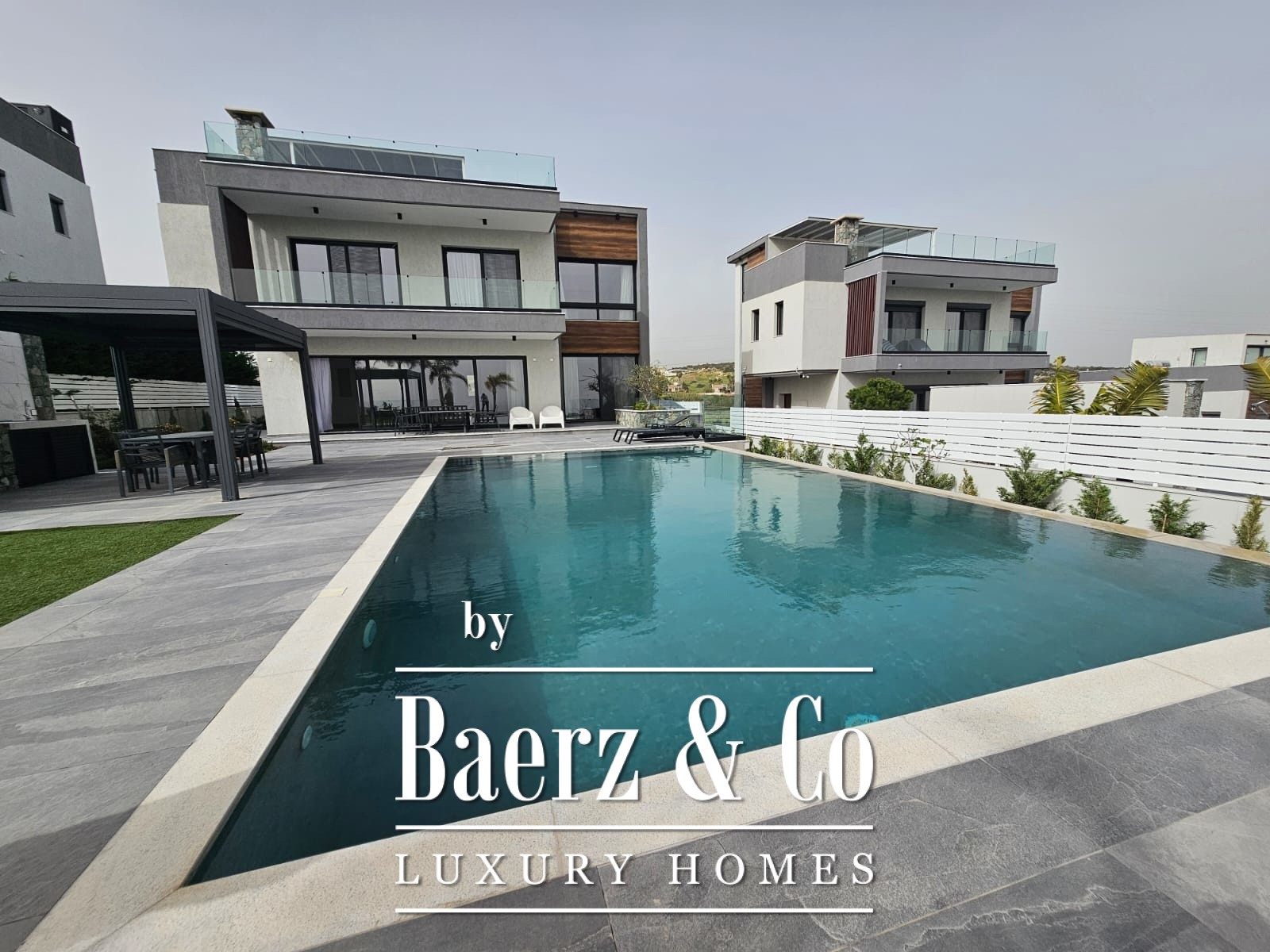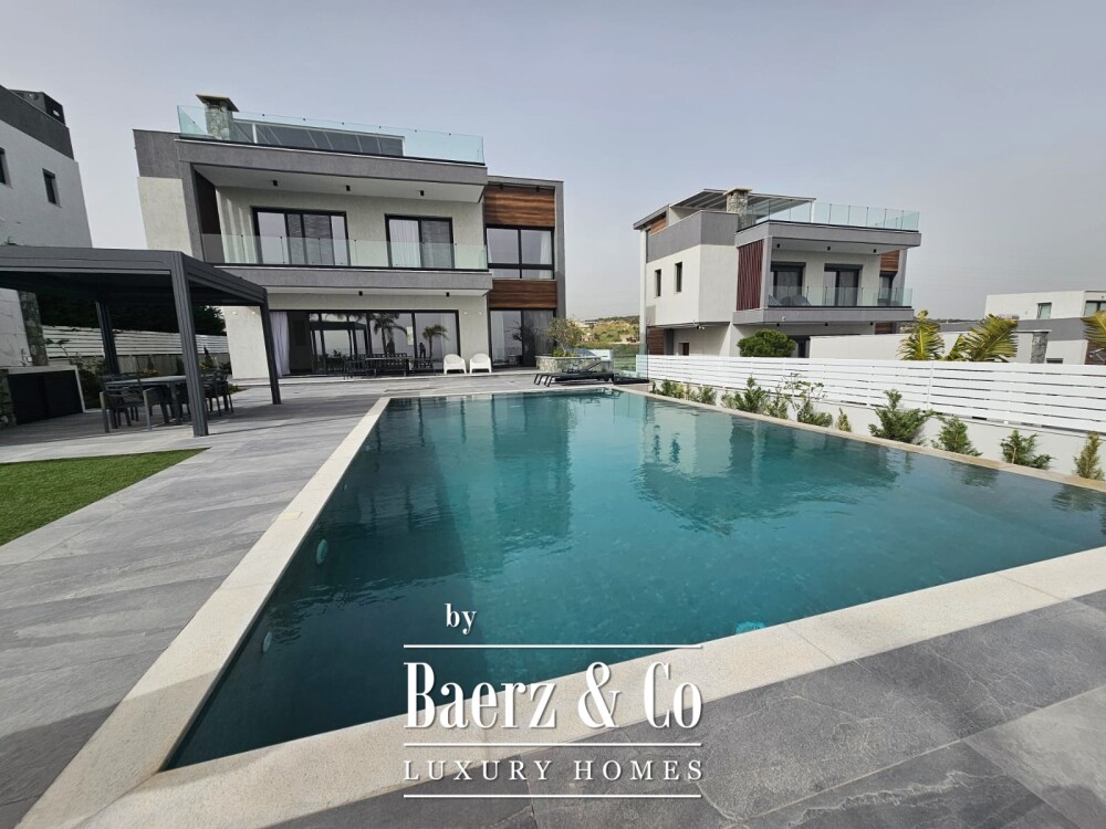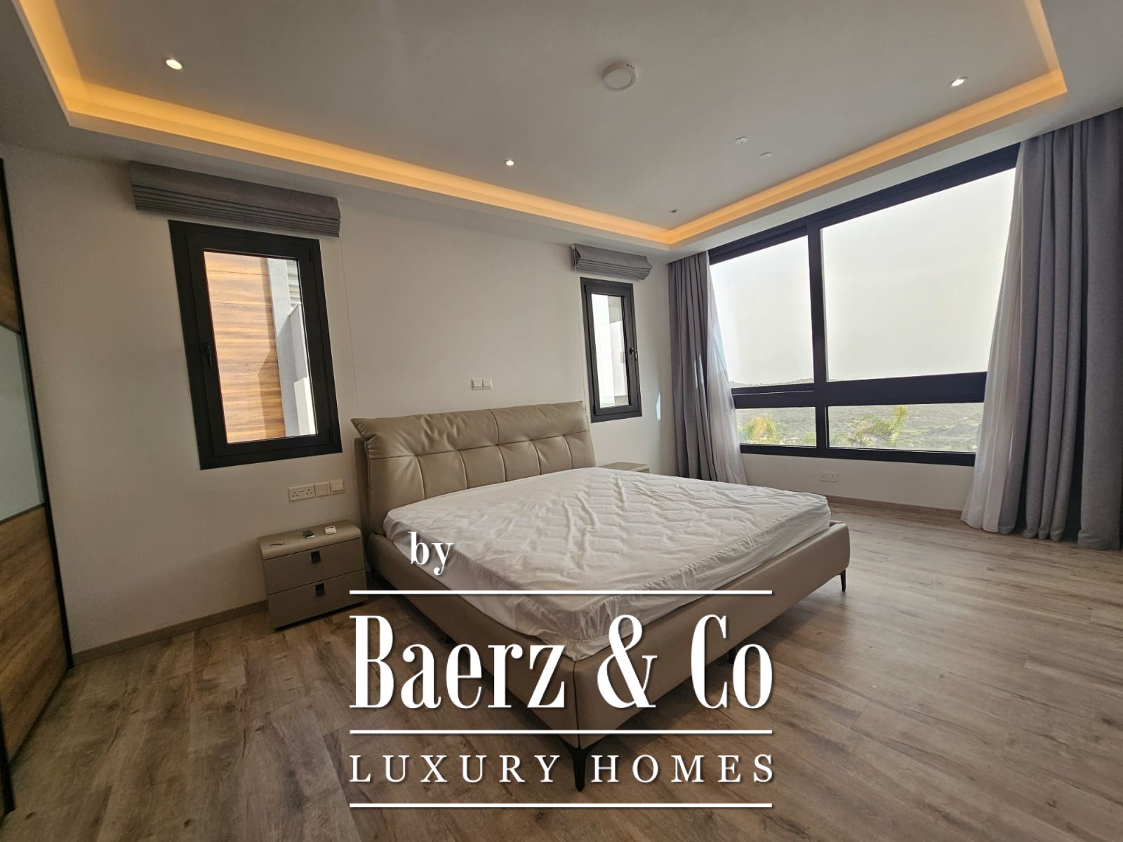 Las principales áreas de estar están orientadas para aprovechar la luz natural, y la distribución de la villa incluye cuatro dormitorios, tres baños y dos aseos para invitados. Los materiales de primera calidad comprenden suelos de baldosas y ventanas de aluminio de doble acristalamiento y eficiencia energética. Calefacción por suelo radiante, aire acondicionado, sistema de ventilación y aislamiento acústico y térmico garantizan el confort durante todo el año. Un ascensor y una escalera internos conectan todas las plantas, aportando comodidad y accesibilidad.