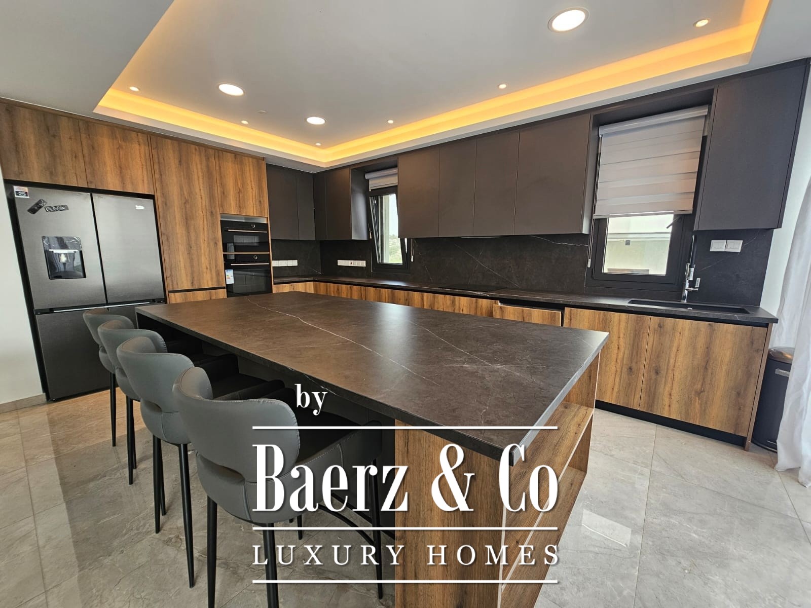 En el exterior, el jardín paisajístico enmarca la piscina privada y la zona de barbacoa, complementados por una ducha y un aseo junto a la piscina. Ocho plazas de aparcamiento, amplios espacios de almacenamiento, puerta de seguridad y una habitación de servicio completan la oferta. Esta villa ejemplifica la vida de alto nivel para quienes se sienten atraídos por el singular paisaje y la tranquilidad de Parekklisia.