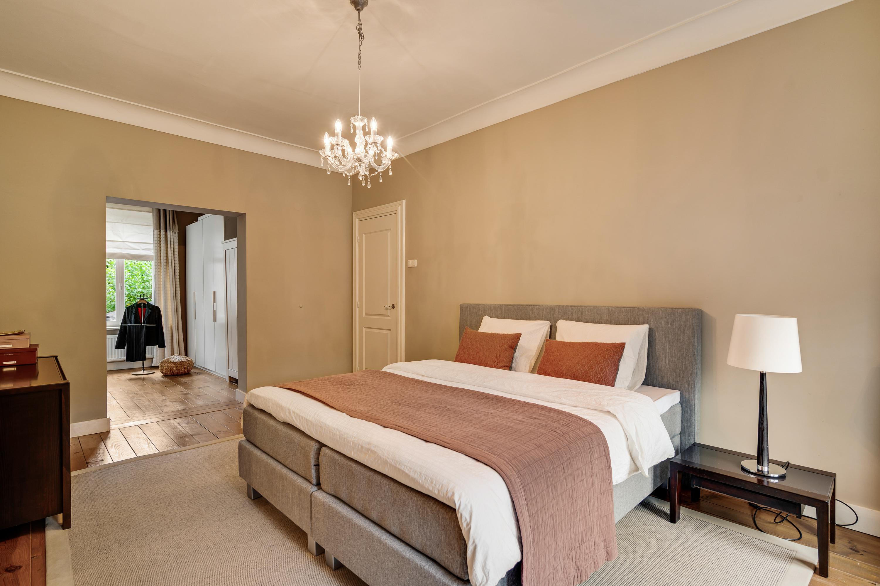 La mansión Roermond se erige como una residencia señorial en el apreciado barrio de Kapel in 't Zand, donde la grandeza clásica se encuentra con el confort moderno en el corazón de la ciudad. Esta propiedad, con 420 m² de espacio habitable sobre una parcela de 576 m², representa el refinamiento de la vida urbana, combinando privacidad con cercanía al animado centro de Roermond. Tras su imponente fachada, nueve dormitorios, tres baños y un elegante despacho se integran mediante una distribución cuidadosamente diseñada. El salón, de casi diez metros de longitud, está realzado por un suelo de parqué estilo Versalles y grandes ventanales, mientras que las puertas francesas se abren a una terraza cubierta y a un apacible jardín urbano—un refugio privado en plena vitalidad de la ciudad.
