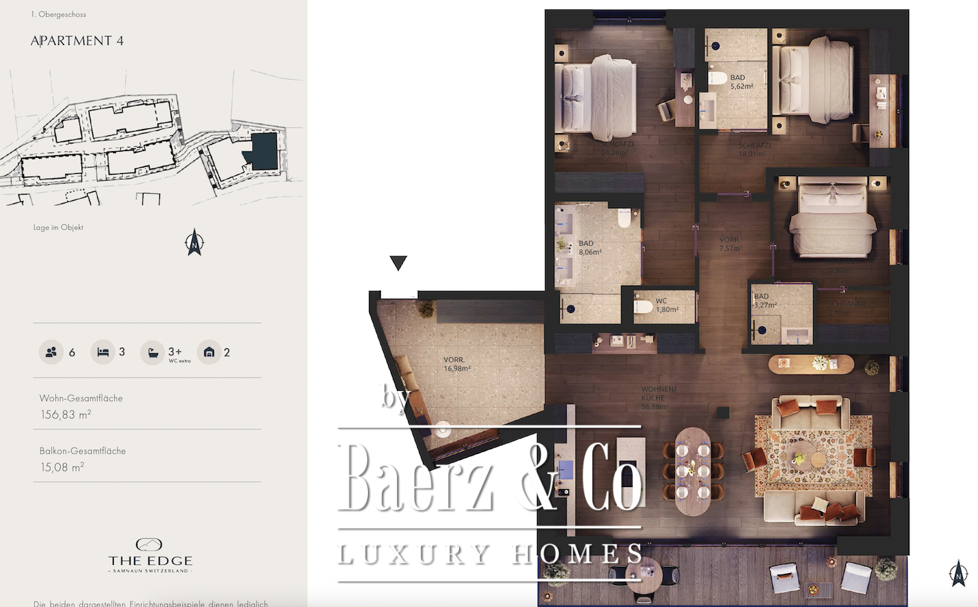 Apartment Samnaun Switzerland ofrece una experiencia de lujo discreto en el corazón de los Alpes suizos. Con una superficie habitable de 157 m² y tres dormitorios, cada residencia está diseñada en un estilo alpino contemporáneo, utilizando materiales de alta calidad y ofreciendo vistas panorámicas que capturan la majestuosidad y serenidad de las montañas circundantes.