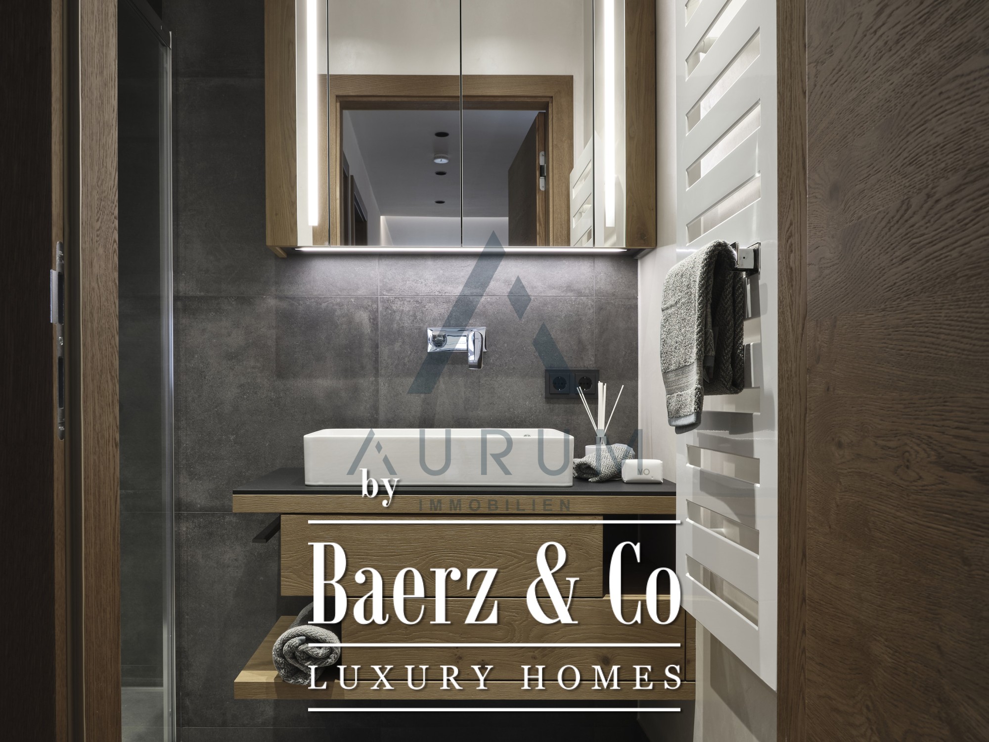 Tres dormitorios brindan un refugio apacible, y la suite principal cuenta con baño en suite. Un aseo adicional para invitados, un cuarto de servicios y un recibidor con guardarropa aportan funcionalidad al día a día. Comodidades como calefacción por suelo radiante, ventilación controlada y persianas venecianas aseguran confort durante todo el año. Completan la oferta dos amplias plazas de garaje subterráneas, trastero con secador de botas de esquí y acceso adaptado para personas con movilidad reducida mediante ascensor.