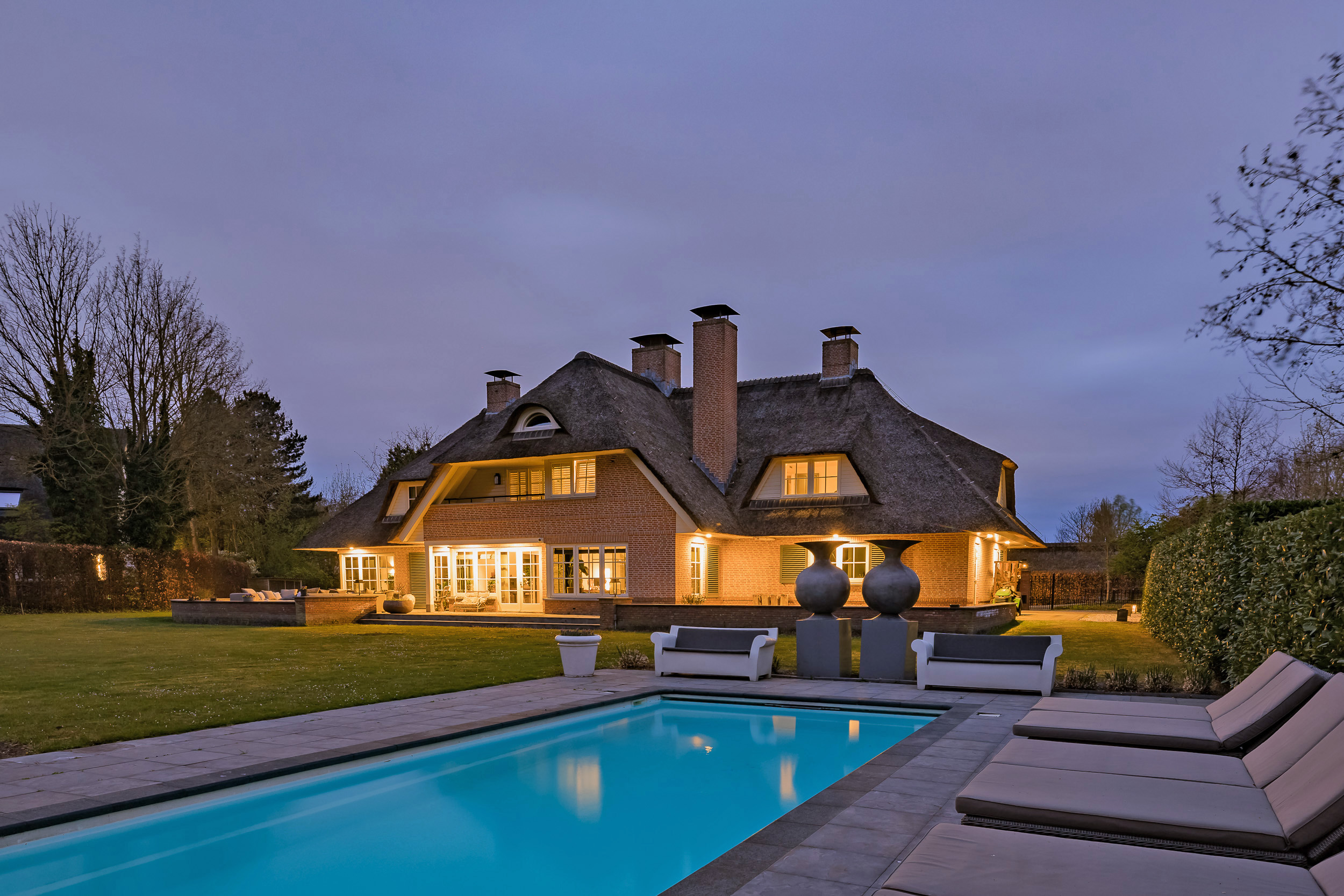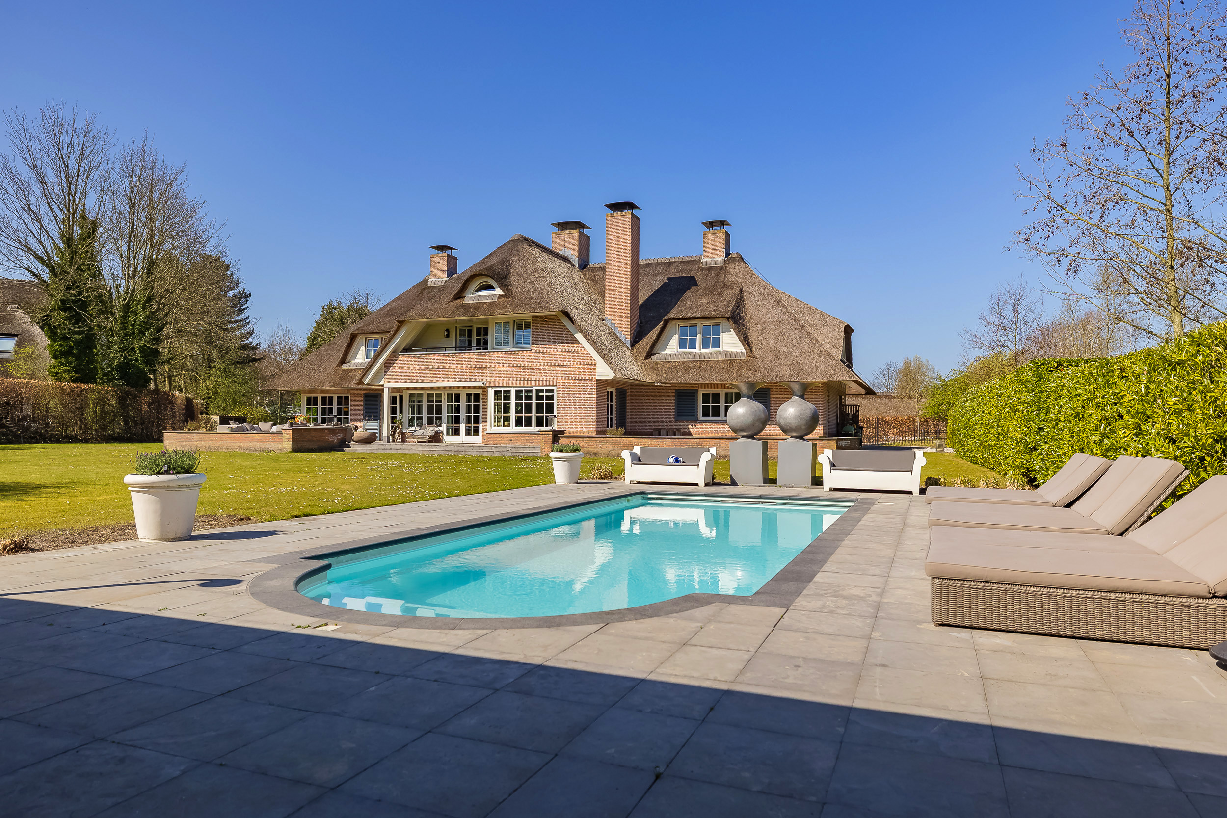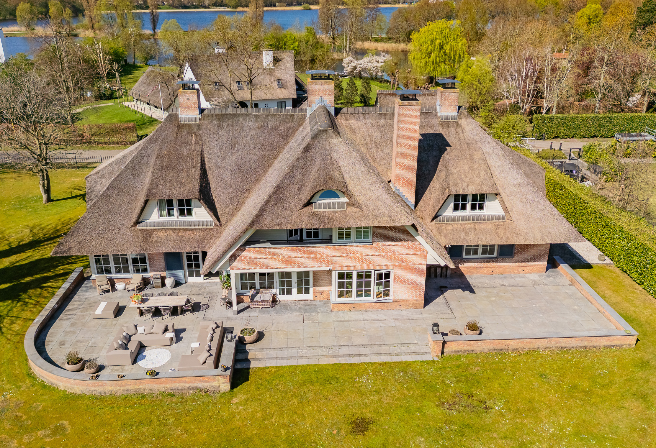 Villa Warmond Exclusive Waterfront Living representa una propiedad excepcional para quienes valoran la privacidad, la autoría de diseño y un entorno apacible. Esta villa en Warmond ofrece 491 m² de superficie interior en una generosa parcela de 4.330 m², realizada en 2006 bajo la dirección de los arquitectos Van Egmond. La villa exhibe una elegancia discreta, con techo de paja, robustos suelos de hormigón en la planta baja, mobiliario a medida y puertas de acero refinadas. La luz, el espacio y la fluidez son el denominador común de cada estancia.