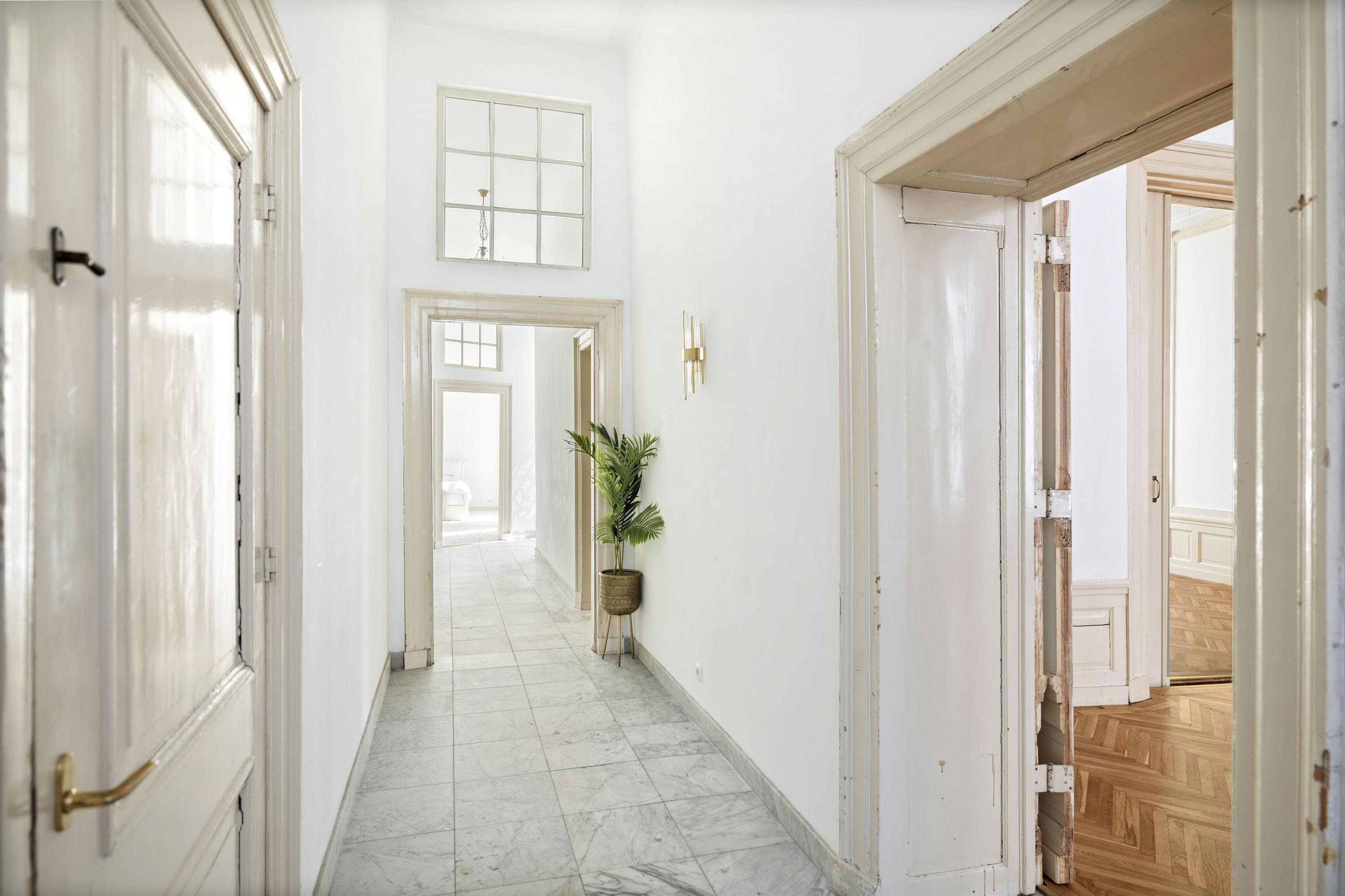 Tres dormitorios están dispuestos para ofrecer privacidad y conexión. La suite principal cuenta con un lujoso baño en suite con bañera independiente y doble lavabo, mientras que el entresuelo revela un cuarto dormitorio con baño privado y vestidor. El confort contemporáneo está presente en toda la vivienda, preservando el romanticismo y la grandeza de finales del siglo XIX.